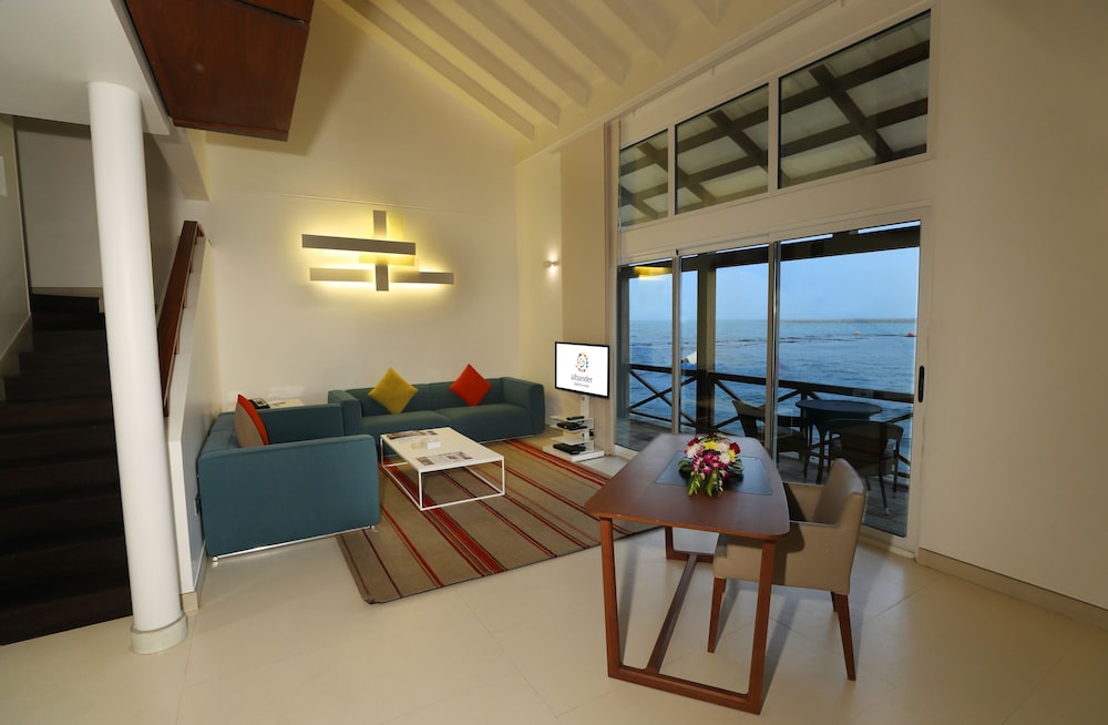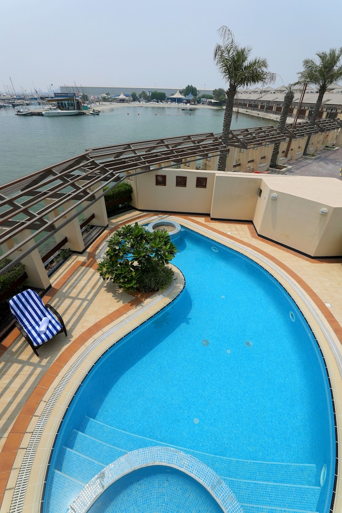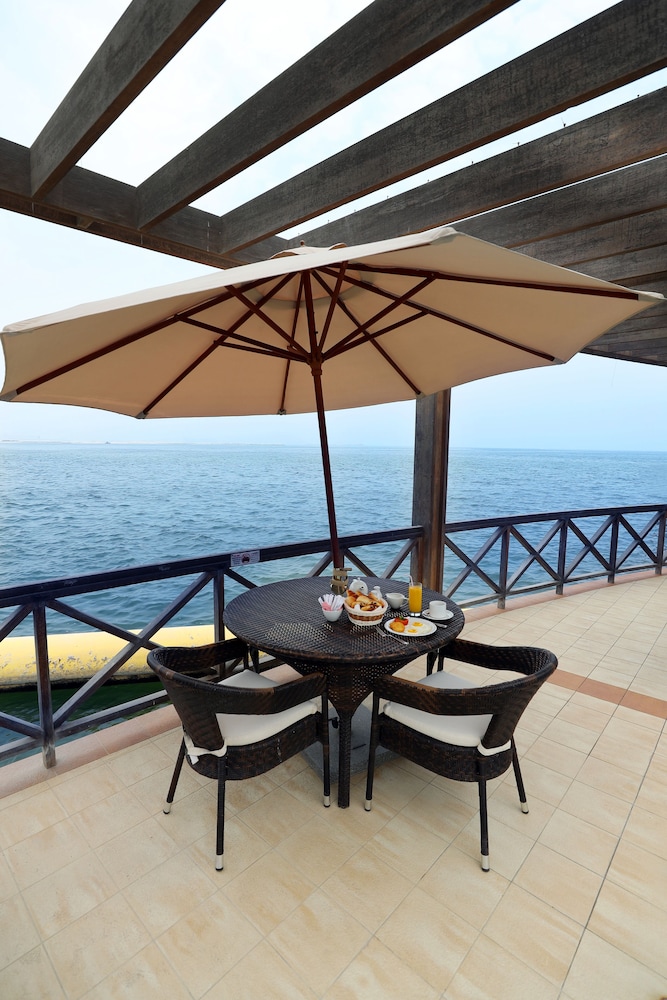 The hotel was sort of on the beach of a lagoon with about 5 meters of gulf beach. There were no amenities available as advertised except the swimming pool. Nice place to dock a boat if you live there and the seafood restaurant on the resort was excellent. However, stay in Manama and drive our to the restaurant.