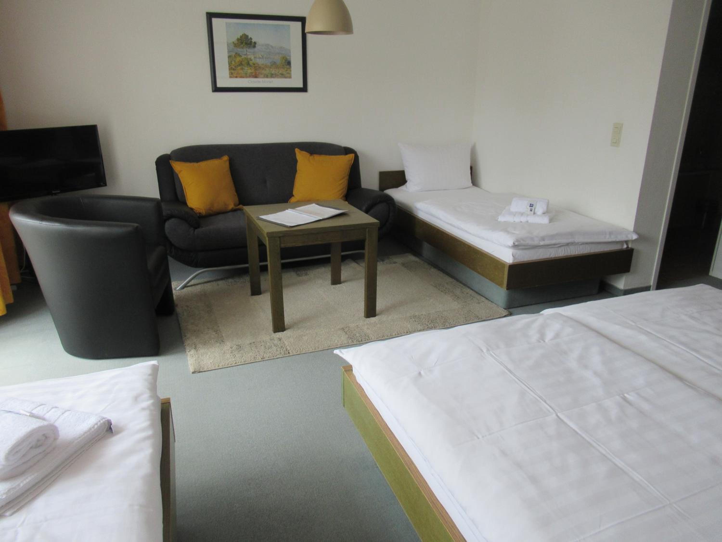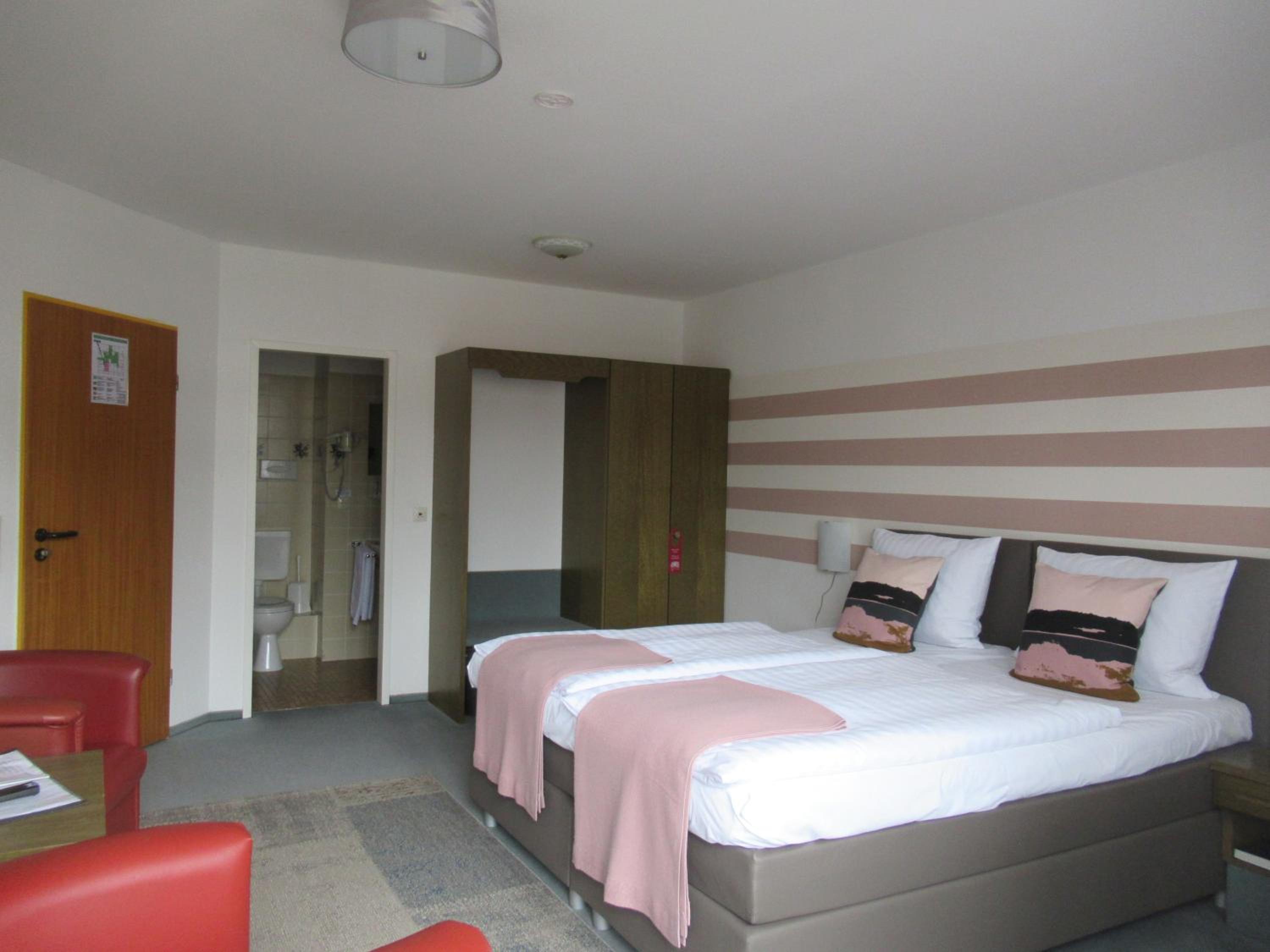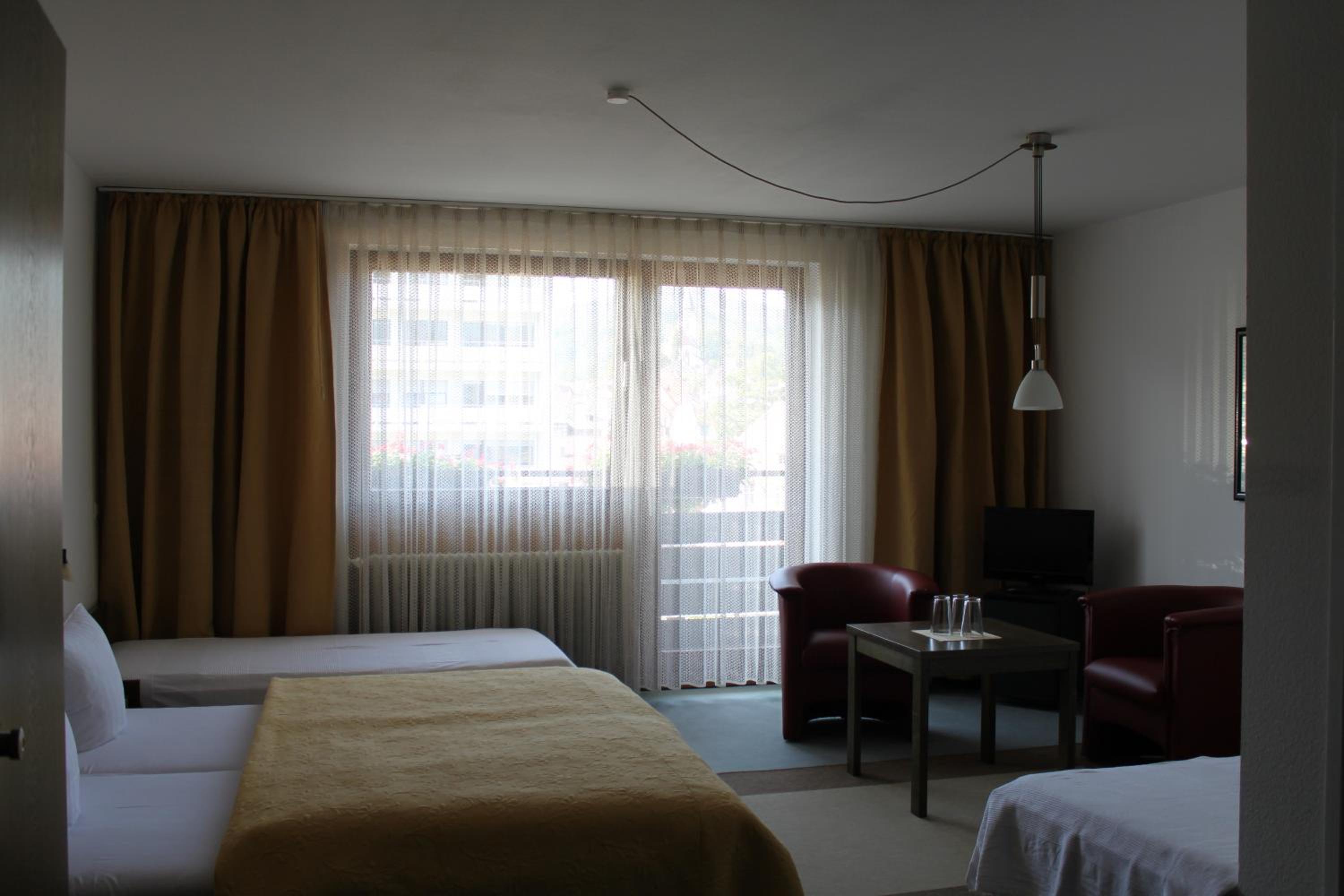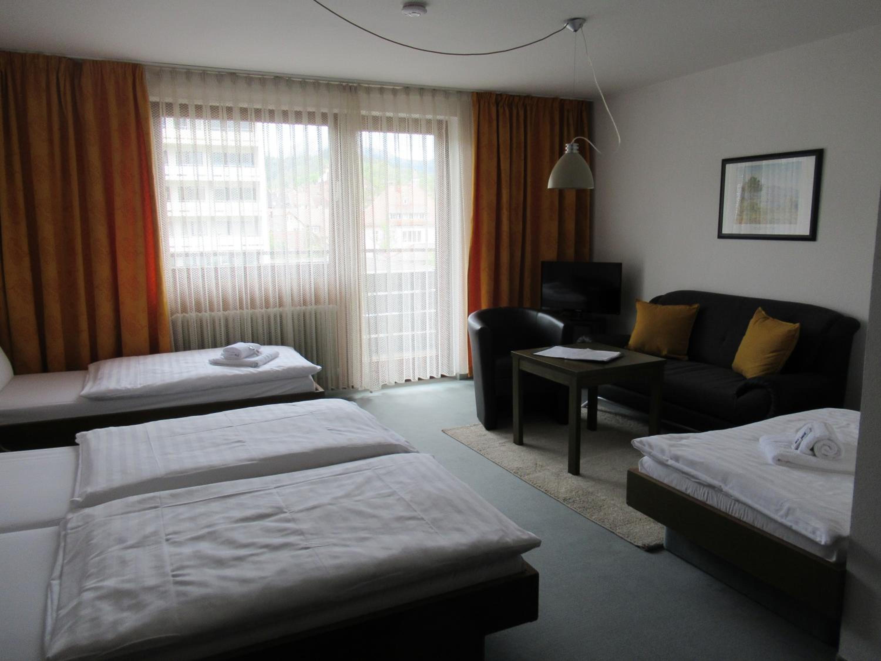 We booked two rooms, both of which were clean and cozy - yet spacious enough for us all (4+3 persons) - with exceptionally clean bathrooms. Breakfast was delicious with a hearty smiling service. Free convenient parking leads you straight to the entrance. The atmosphere in and outside the hotel was very quiet and peaceful. The tram is right across the parking lot (and yet, still, very quiet), and a supermarket (Lidl) is located about 5-minutes walk (a few-seconds drive) from the hotel - for those who need extra supplies before you hit the road. Baden-Baden is some 15-minutes drive away through villages and endless woods, and the Baumwipfelpfad Schwarzwald (Treetop Walk) and Wild Line are nearby on the other side... Perfect!