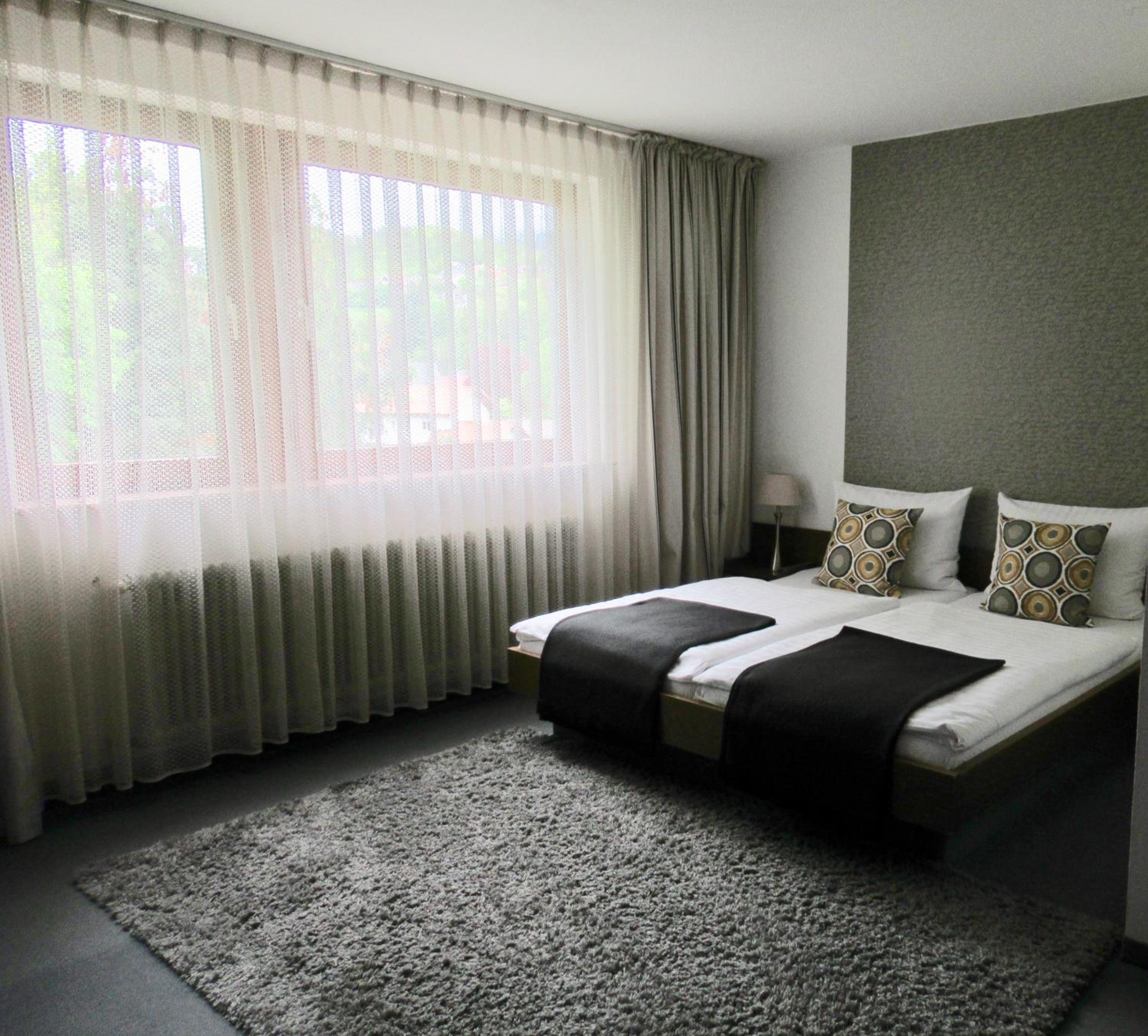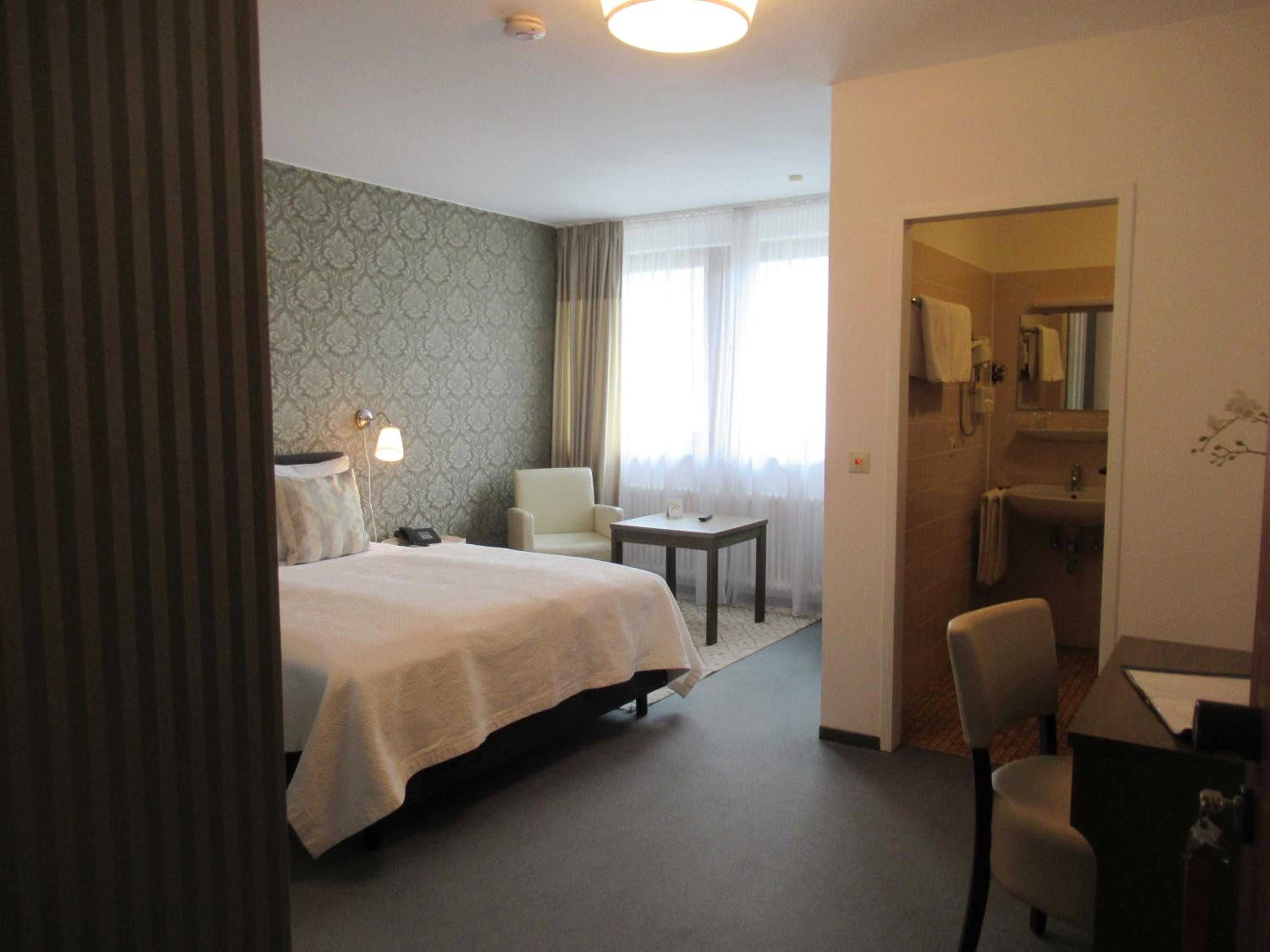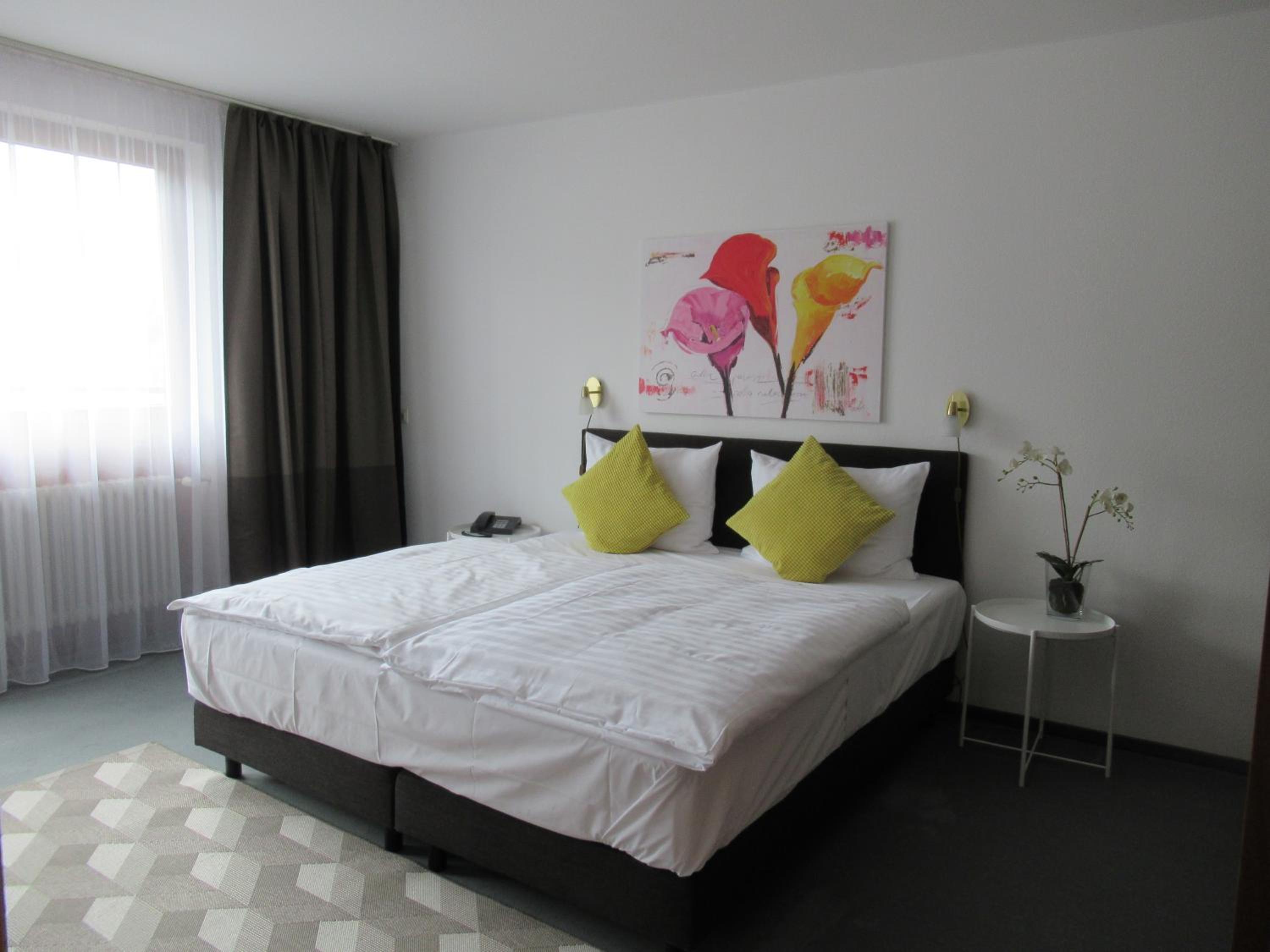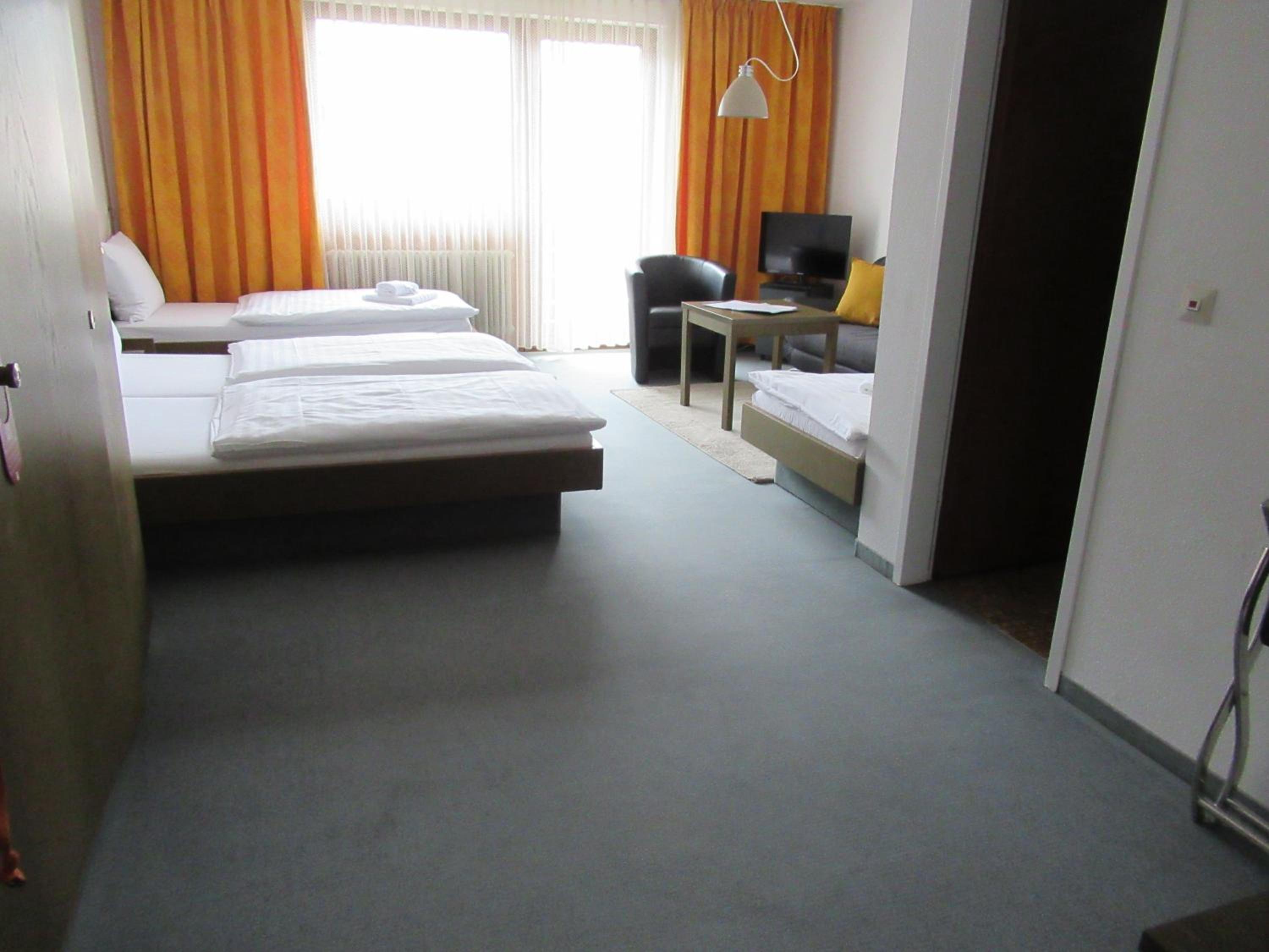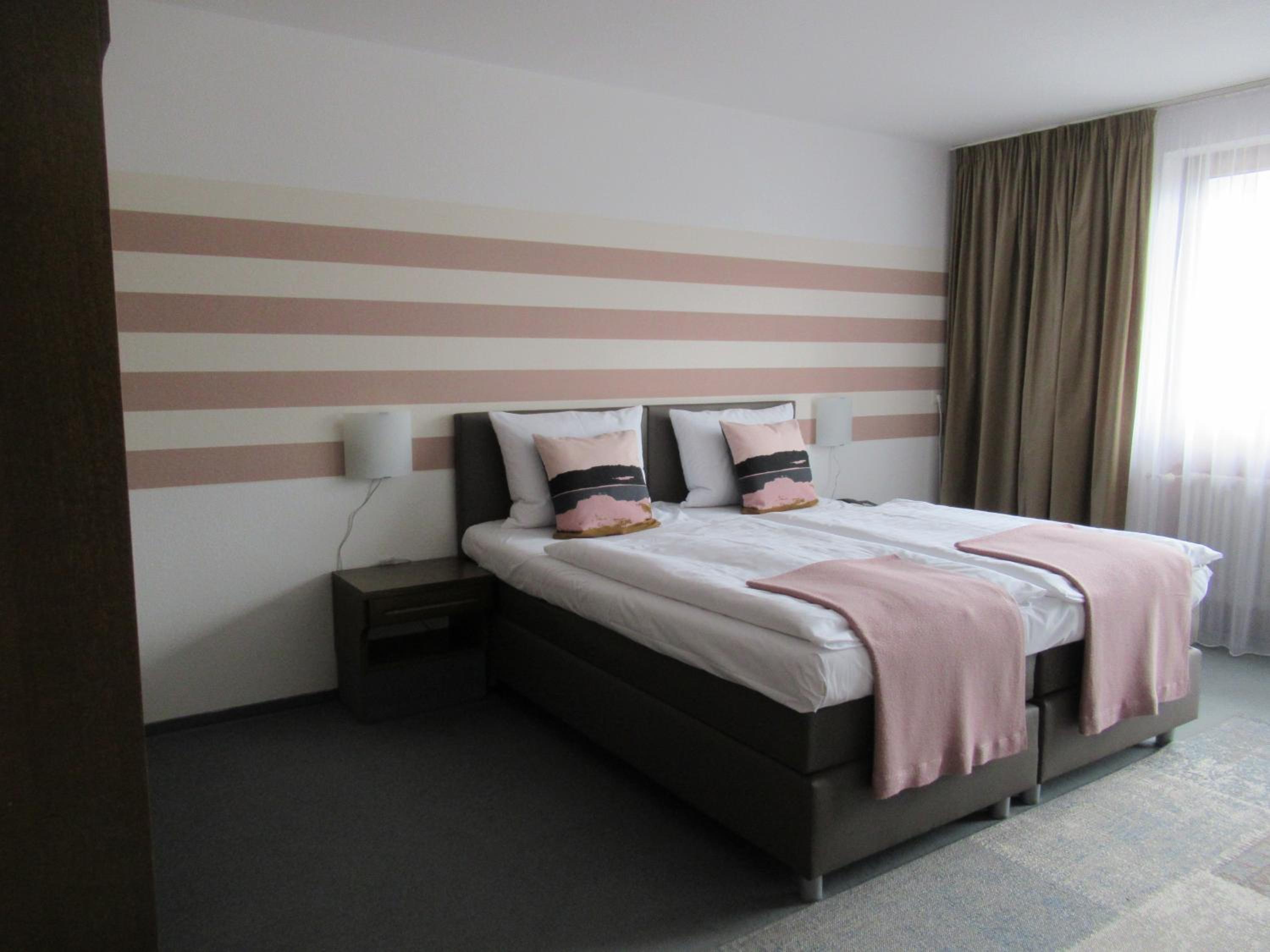 We booked two rooms, both of which were clean and cozy - yet spacious enough for us all (4+3 persons) - with exceptionally clean bathrooms. Breakfast was delicious with a hearty smiling service. Free convenient parking leads you straight to the entrance. The atmosphere in and outside the hotel was very quiet and peaceful. The tram is right across the parking lot (and yet, still, very quiet), and a supermarket (Lidl) is located about 5-minutes walk (a few-seconds drive) from the hotel - for those who need extra supplies before you hit the road. Baden-Baden is some 15-minutes drive away through villages and endless woods, and the Baumwipfelpfad Schwarzwald (Treetop Walk) and Wild Line are nearby on the other side... Perfect!