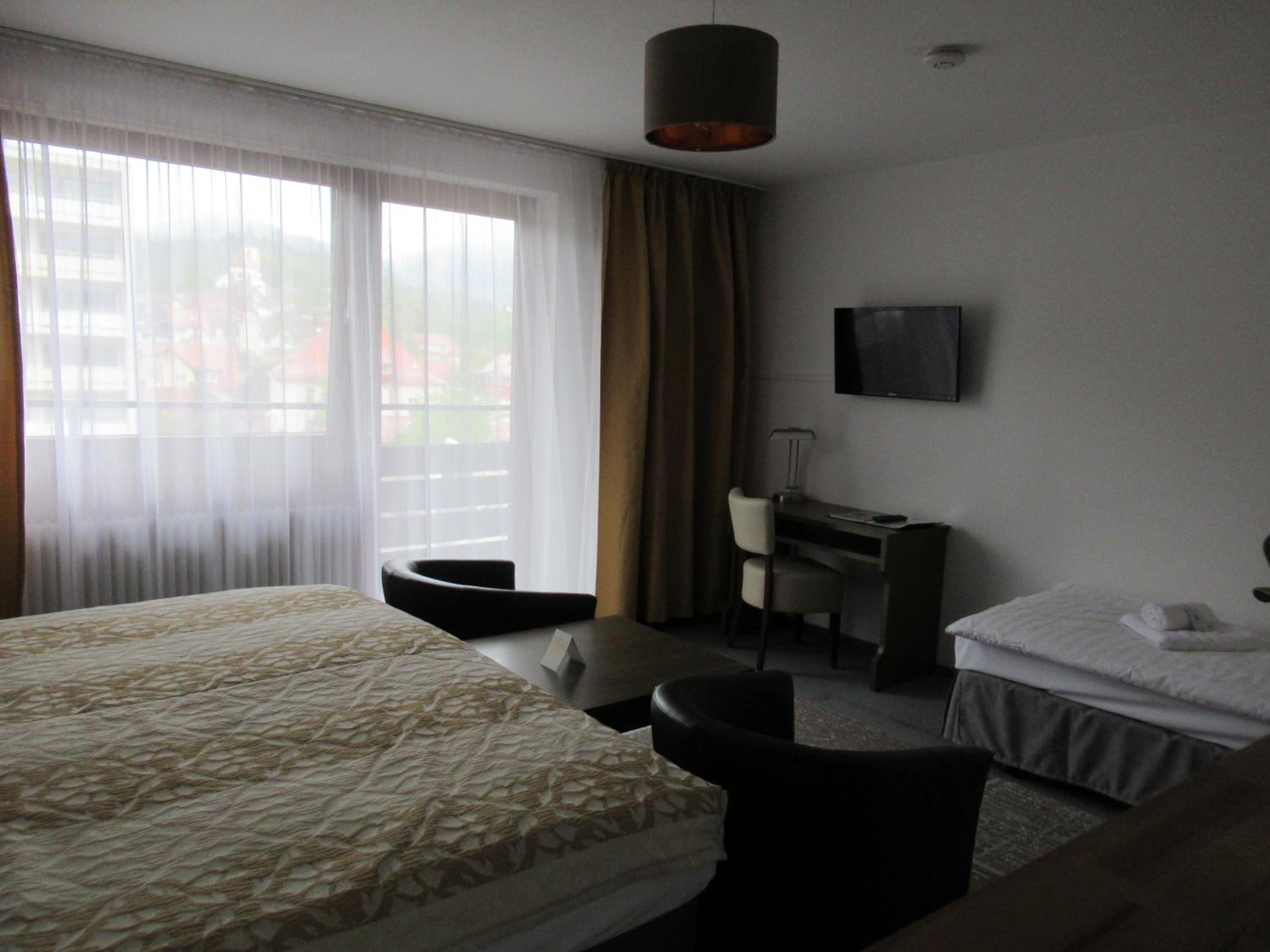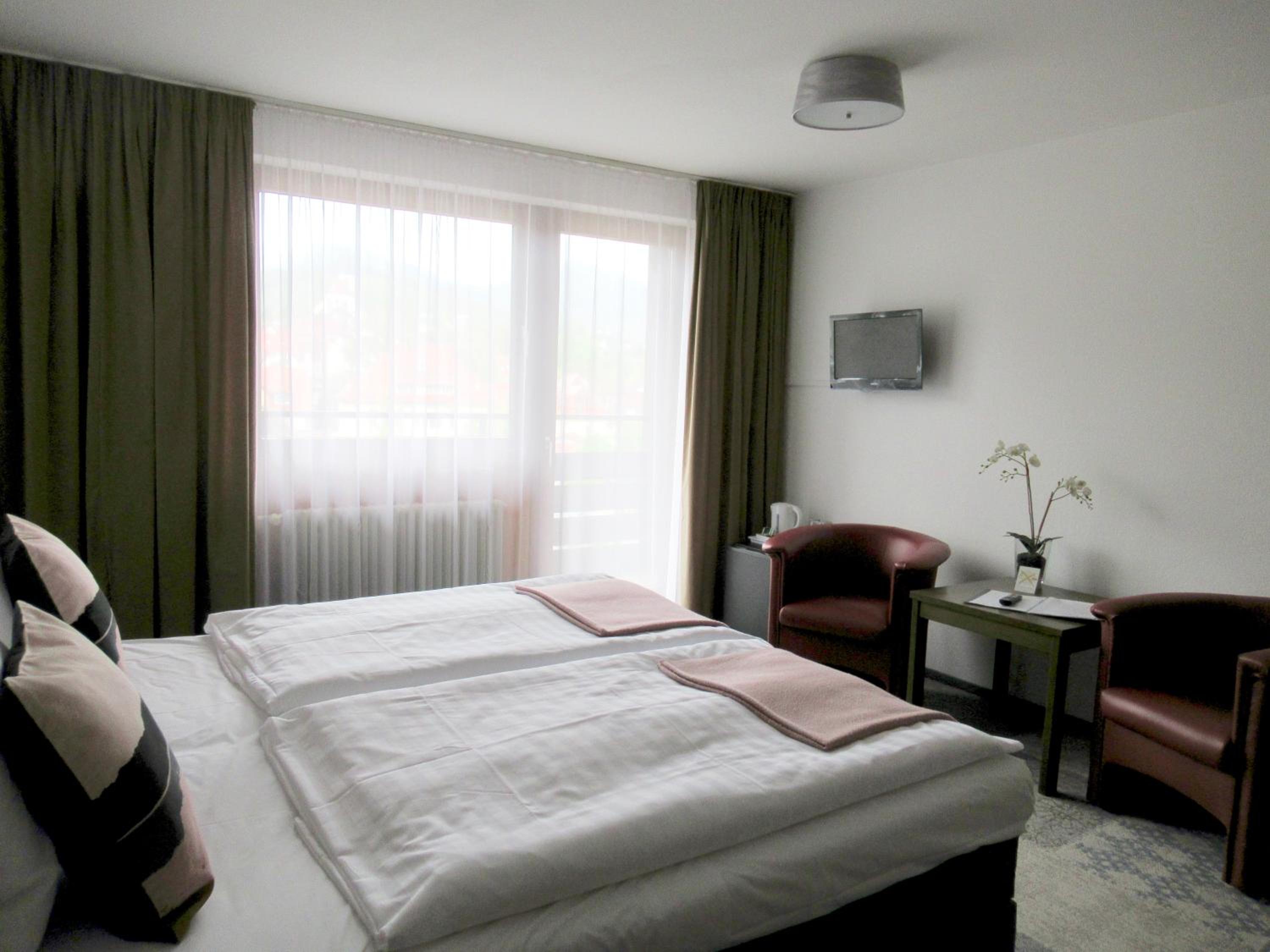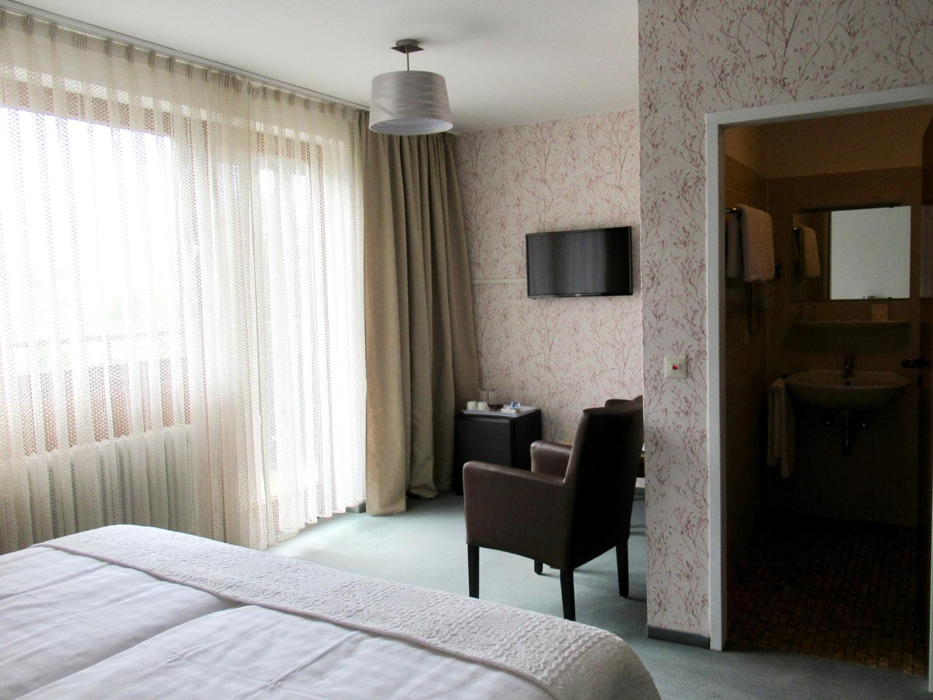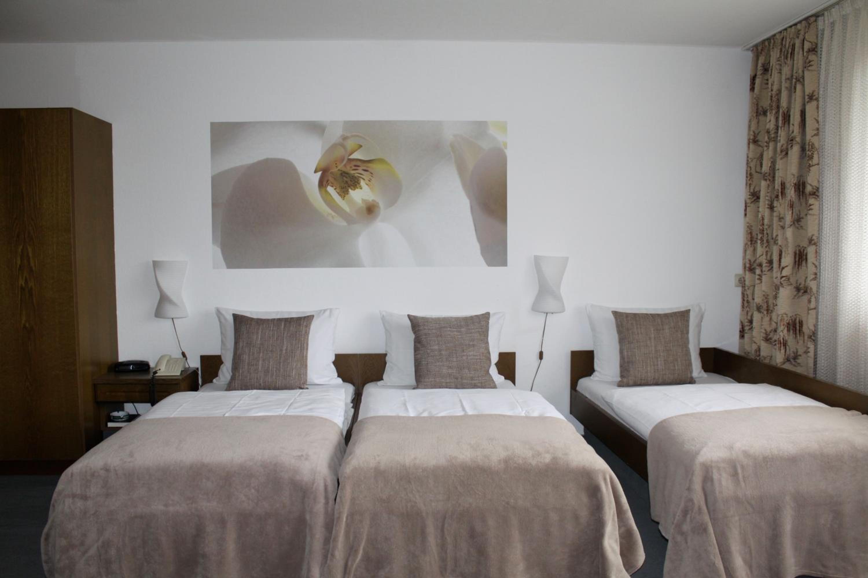 We booked two rooms, both of which were clean and cozy - yet spacious enough for us all (4+3 persons) - with exceptionally clean bathrooms. Breakfast was delicious with a hearty smiling service. Free convenient parking leads you straight to the entrance. The atmosphere in and outside the hotel was very quiet and peaceful. The tram is right across the parking lot (and yet, still, very quiet), and a supermarket (Lidl) is located about 5-minutes walk (a few-seconds drive) from the hotel - for those who need extra supplies before you hit the road. Baden-Baden is some 15-minutes drive away through villages and endless woods, and the Baumwipfelpfad Schwarzwald (Treetop Walk) and Wild Line are nearby on the other side... Perfect!