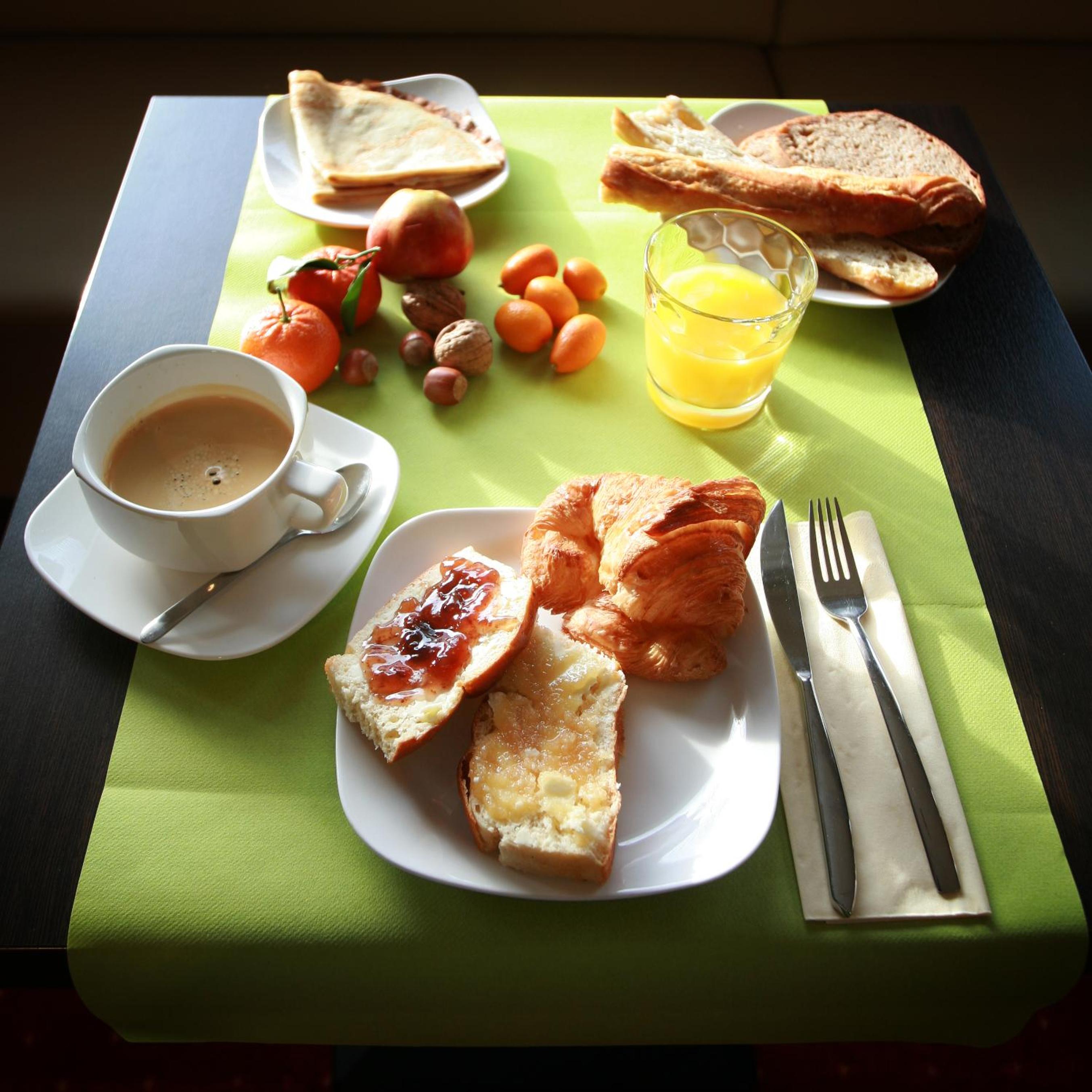 Lovely breakfast with wide choice of breads and pastry. Nice coffee.