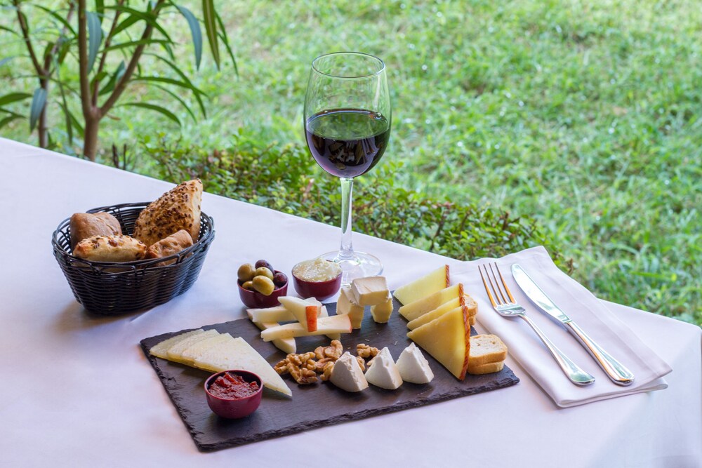 Savor Mediterranean cuisine at Restaurante Almassera, with the option to enjoy drinks at the bar/lounge or dine alfresco while taking in the garden view.