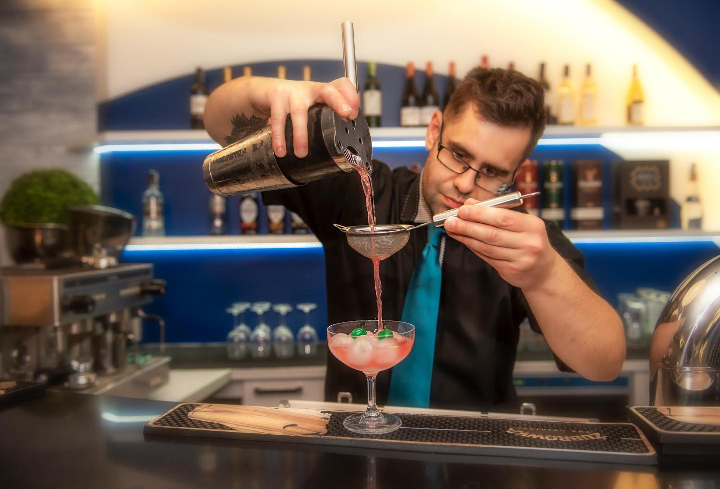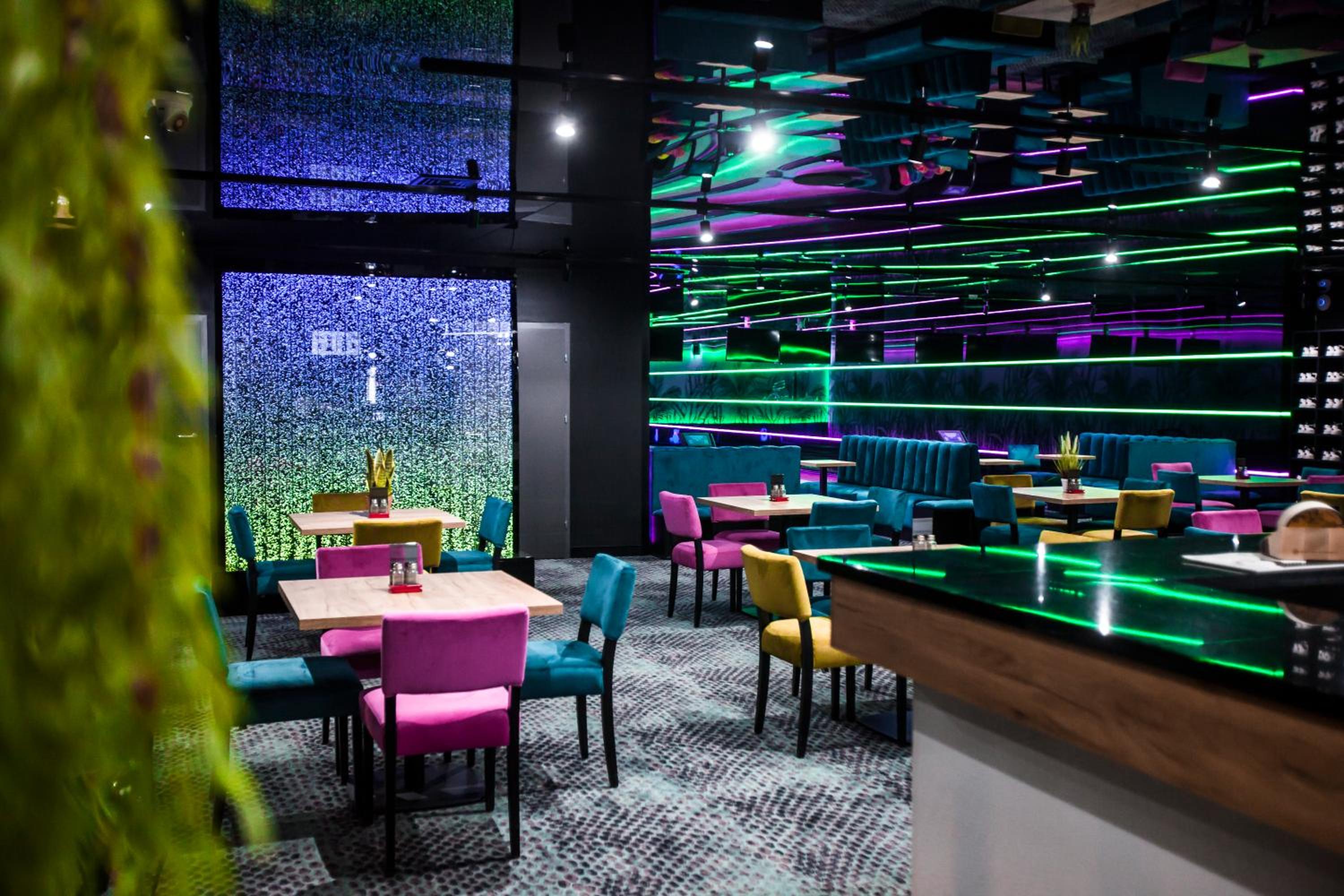 Jedzenie w restauracji a’la carte dobre, ale zostało podane zimne. Na barze w sobotni wieczór jeden barman, przez co czas oczekiwania na drinki był mocno wydłużony. Natomiast gdy przyszłyśmy drugi raz ok 21:00 i zajęłyśmy stolik blisko baru, nikt z obsługi nas nie zauważył - pani kelnerka stała przy bonowniku i była zajęta obserwowaniem tańczących gości. Gdy skończyłyśmy napoje, również nie było zainteresowania czy chciałybyśmy coś domówić lub zapłacić.