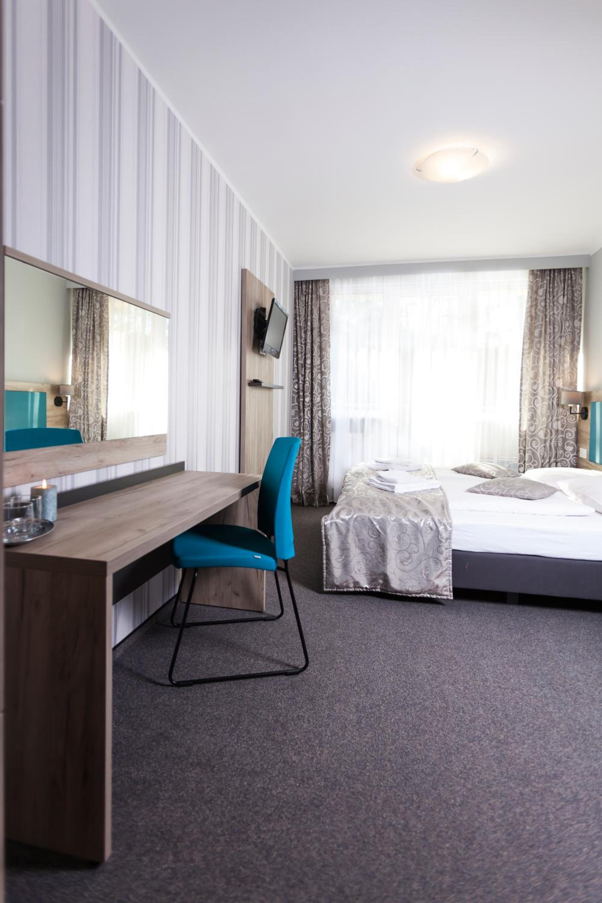 Kameralny hotel położony bardzo blisko plaży, pokoje czyste i odpowiednio wyposażone. Duży wybór na śniadaniach, wiele atrakcji w hotelu - kręgle, bilard, muzyka na żywo. Bardzo miła i kompetentna Pani w recepcji (podczas naszego zameldowania). Bezkosztowa możliwość późniejszego wymeldowania.