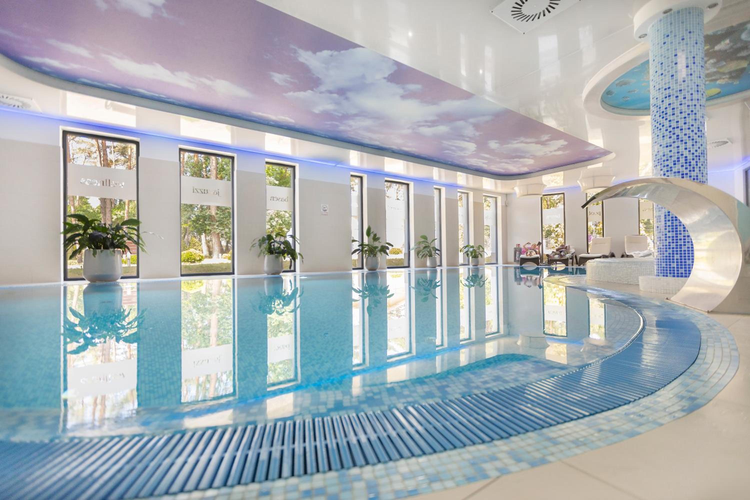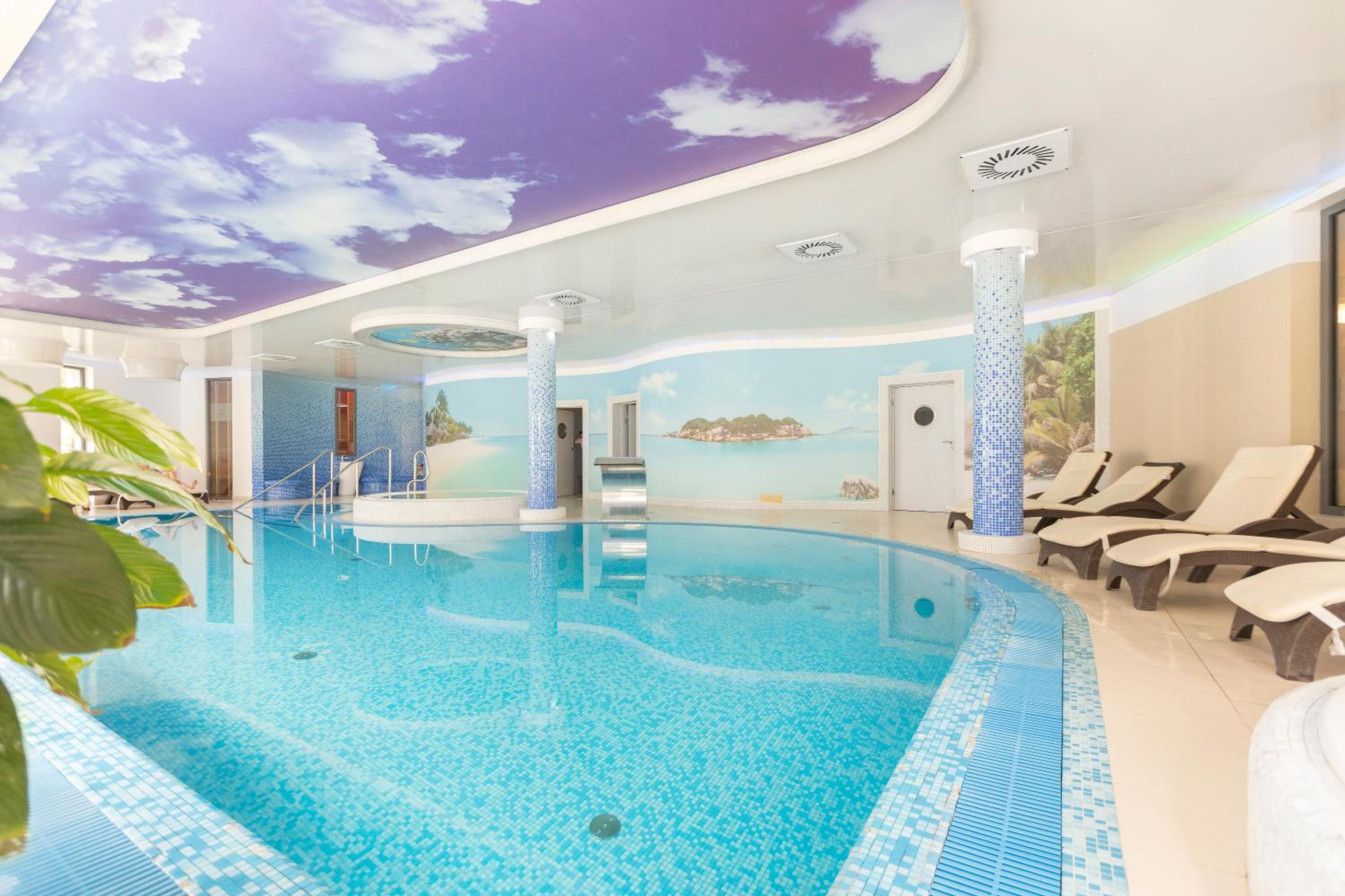 Guests can indulge in various spa treatments, baths, and body wraps at the hotel's spa and wellness facilities. Enjoy the pool complex with indoor swimming pool, Jacuzzi, salt-water Jacuzzi, dry sauna, and steam sauna free of charge (excluding Standard Apartment guests). Additionally, there's a solarium and massage parlour for ultimate relaxation.