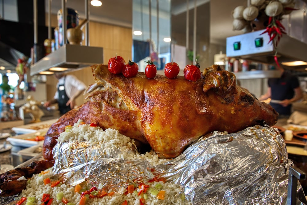 We had to wake up early to claim chairs around the pool or on the beach, because at 9:30 am there was not a single free chair. The beach had rocks and seaweed and wasn’t very clean. There was loud music from morning till evenings and mercifully there was couple of hours break at noon, so we could relax.