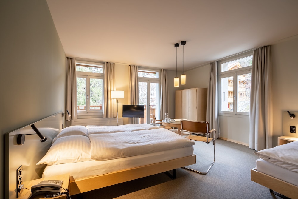 This is a wonderful hotel -- a stylish simplicity with stunning views from the balcony and a lovely lawn to contemplate the grandeur of the alps. Staff could not have been nicer - delicious breakfast -- a perfect base to explore.