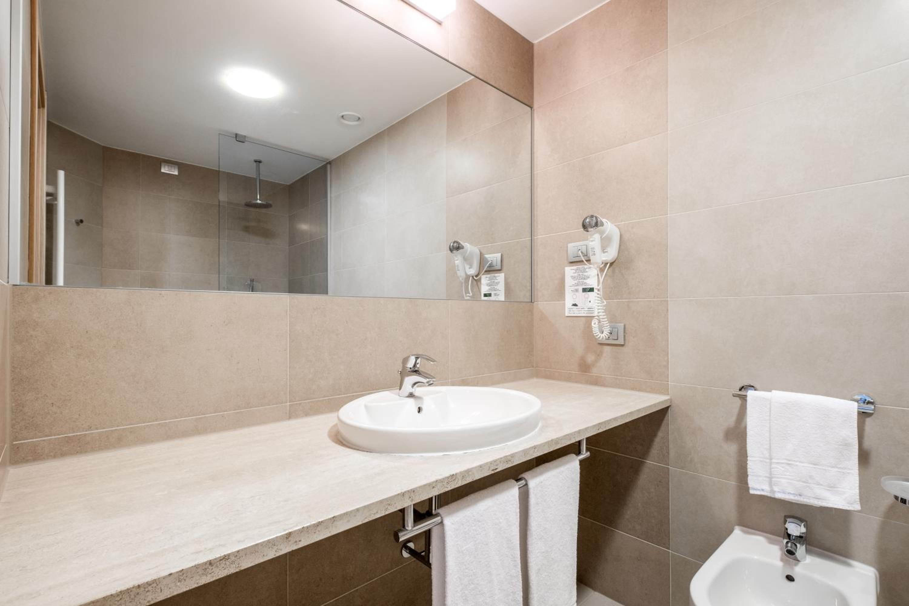 Indulge in the Italian-style interiors of the spacious rooms at The Quality San Martino. Decorated in warm-toned colors, each room features a 32-inch satellite TV, a large wardrobe, a safe, and designer bed linen.