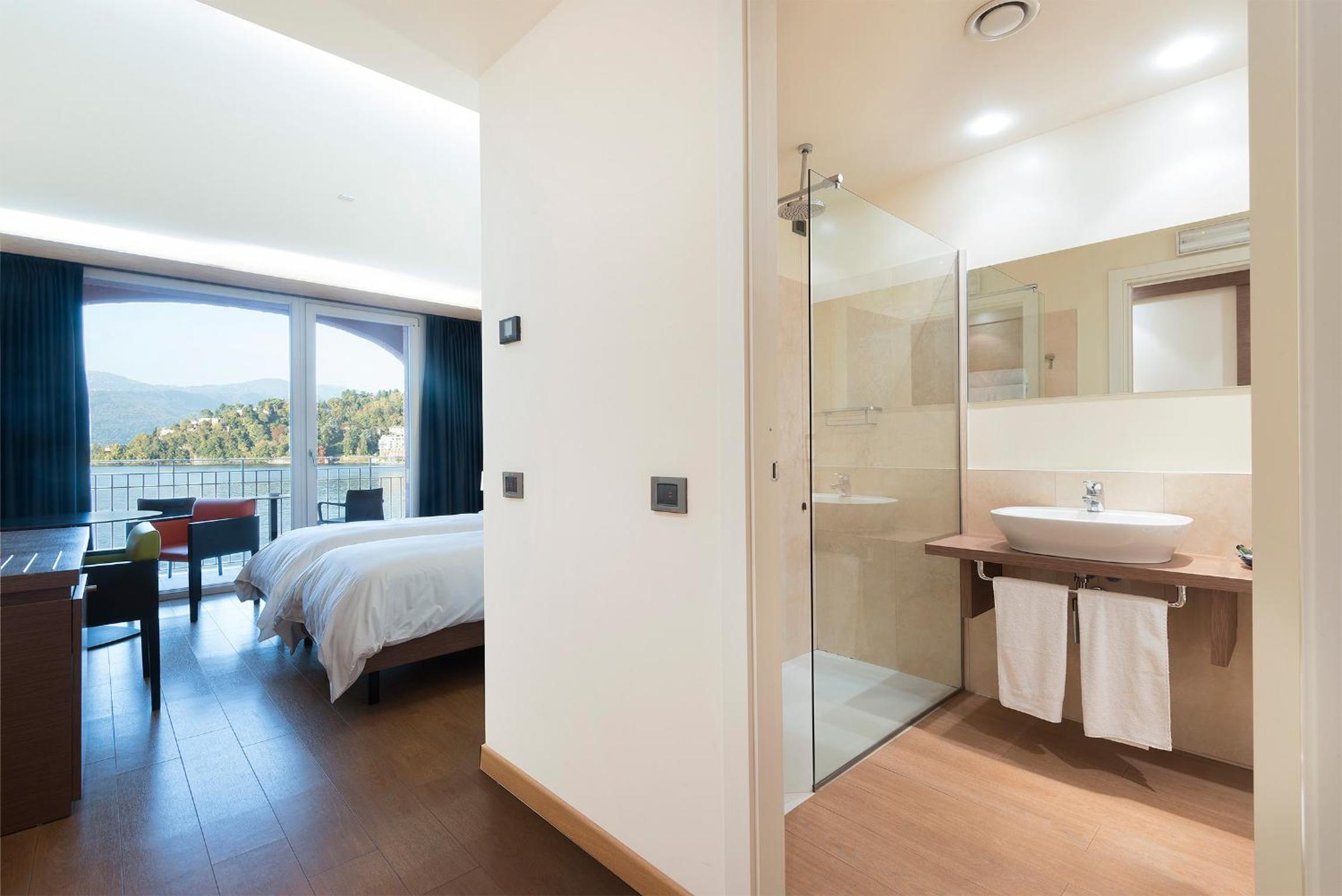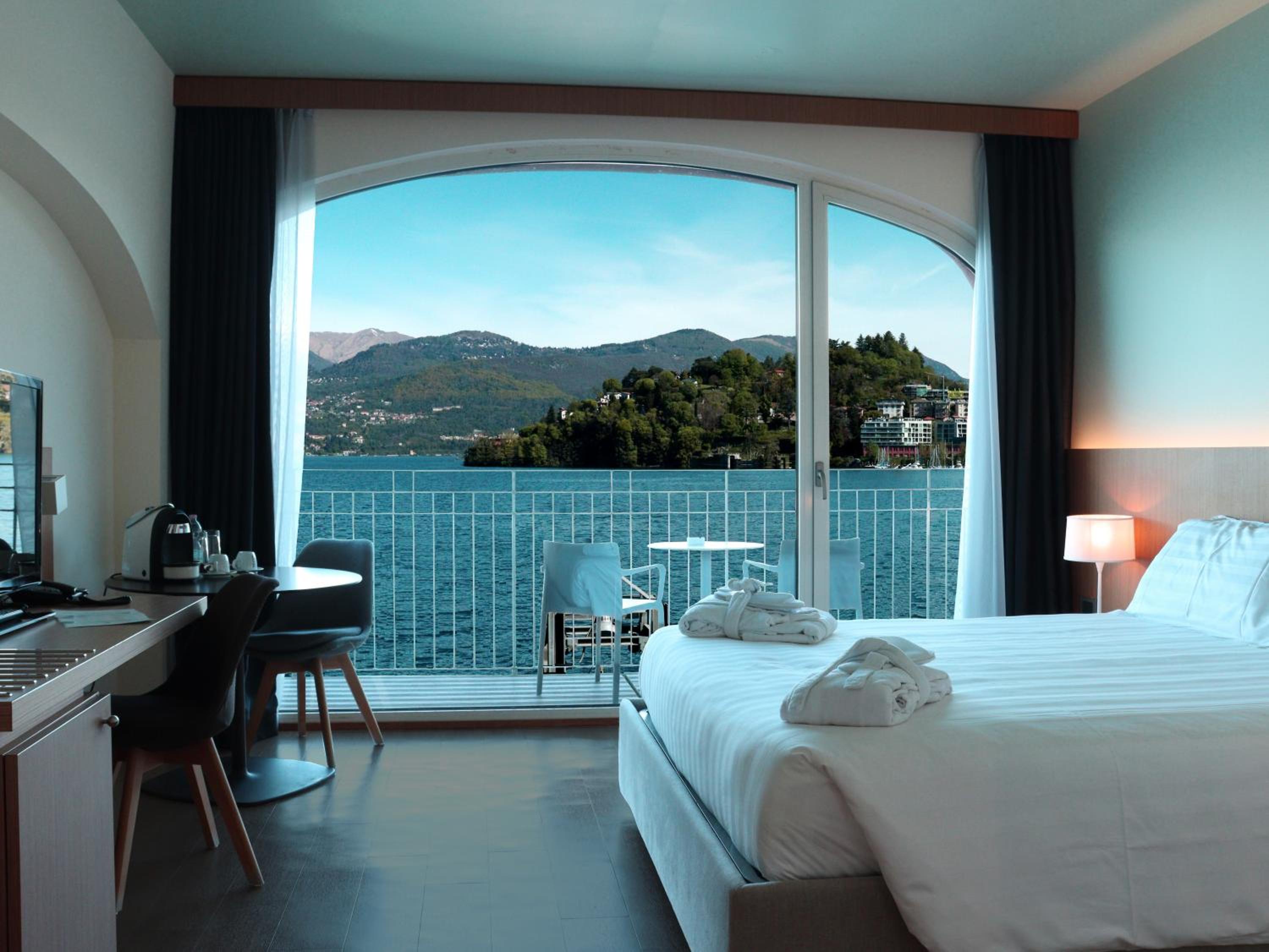 The guest rooms at Porticciolo boast elegant decor, en suite bathrooms, and balconies with lake views. Each room is equipped with modern amenities such as a safe, satellite TV, and minibar.