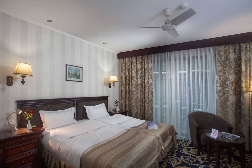 The London Hotel is convenient if you want to stay near Odessa's city center for a good price. However, you are not near any major attractions and the nearby streets can be quite dark at night. Stayed in August and the AC of my room could not keep up with how warm it was at night. The hotel staff did their best but it was a problem. The elevator is quite loud and if you're facing the courtyard then there's nothing you can do. The breakfast was amazing. One of the best breakfast selections that I've ever experienced. Tons of variety. I'm not sure that I would stay here again, but the price was quite good.