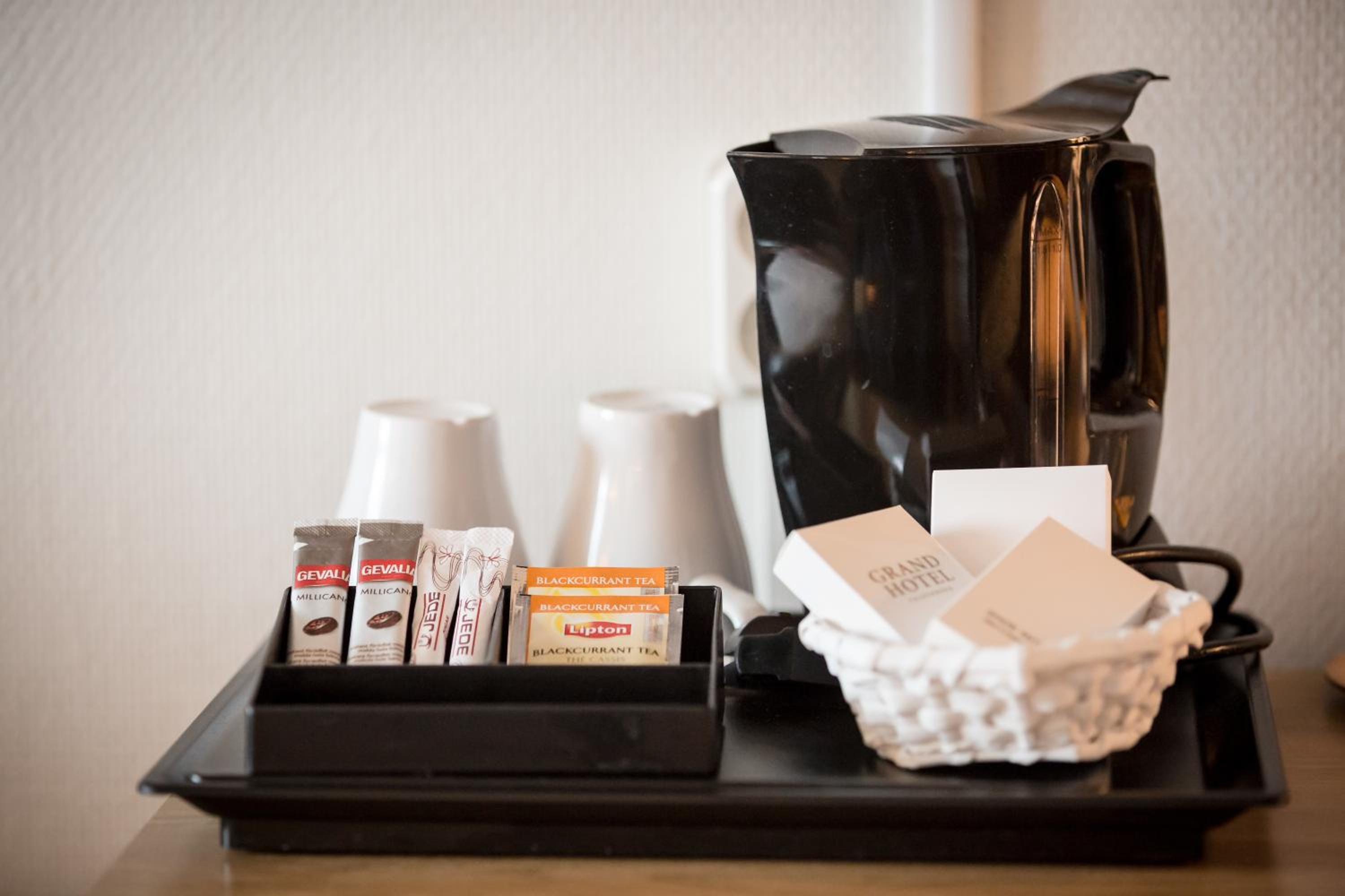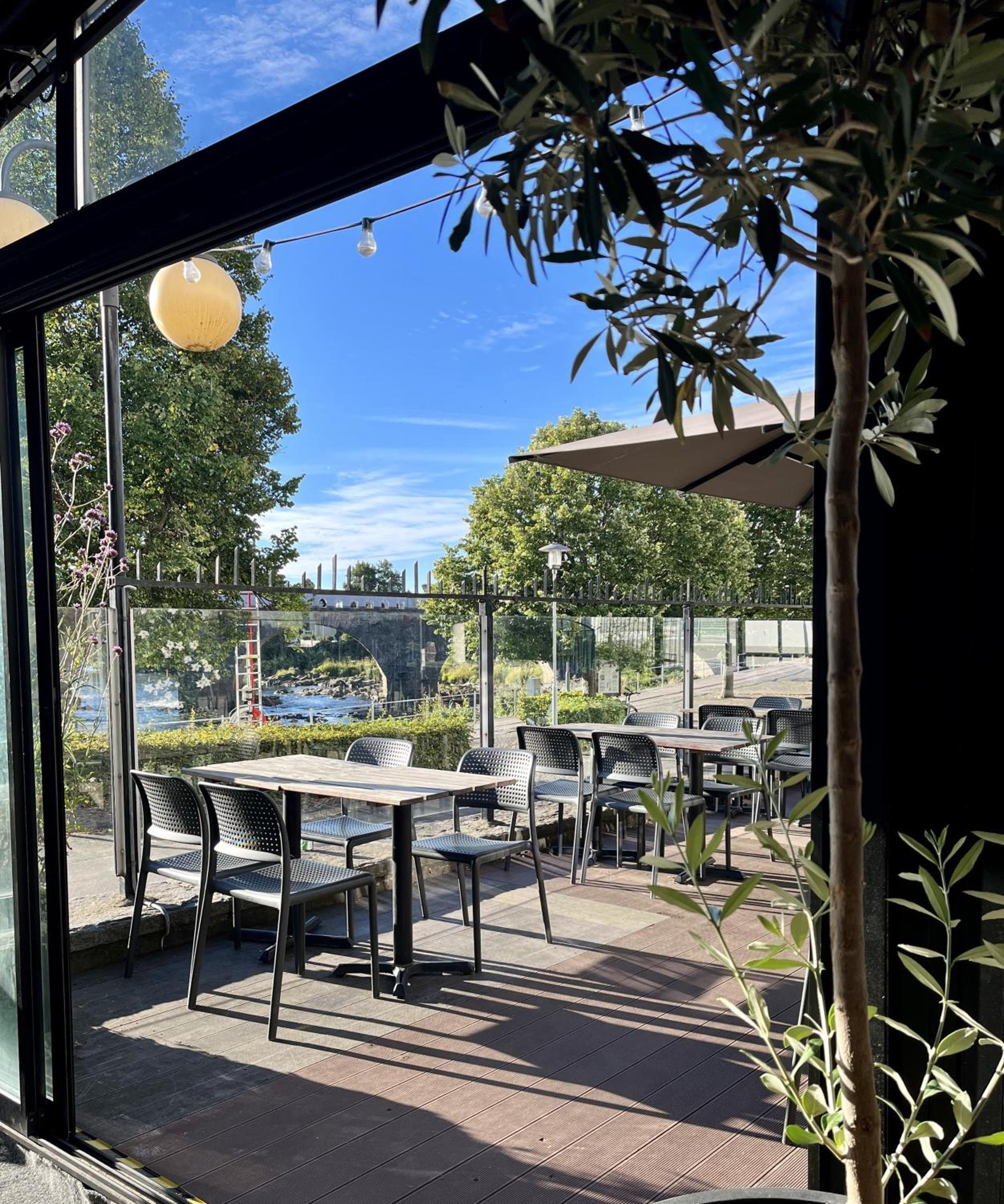 I faciliteter skulle det ha funnits vattenkokare men fick klä på mig för att gå ner och hämta kaffe vid receptionen. I vårt lite dyrare rum borde funnits kylskåp vilket fanns i våra vänners billigare rum. Det varnades för hög musik sent på kvällen som kunde höras på rummet och det stämde. Bra var terrassen med fina Ätran framför. Ni borde dock tänka på att tvätta taken över uteplatsen till restaurangen och även över ingången till hotellet som är synliga från alla rummen ovanför. AC fanns ju inte heller men ok med fläktarna.