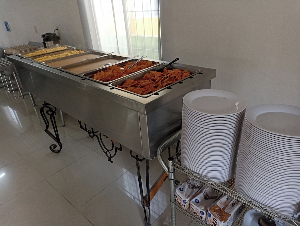 Si hay una tienda de conveniencia, el personal poco amable e indiferente. La habitación no hay secadora de pelo, toallas de mano. Cuando solicitas algo en específico te piden tu credencial. Me pareció un motel de paso.