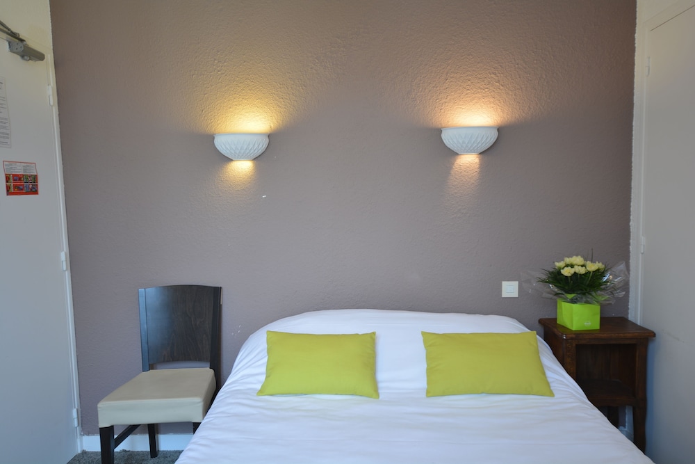 Réceptionniste accueillant et aidante. Hôtel bien situé au cœur du bourg mais confort literie moyen car matelas très dur. Assez vétuste mérite un peu de rénovations.