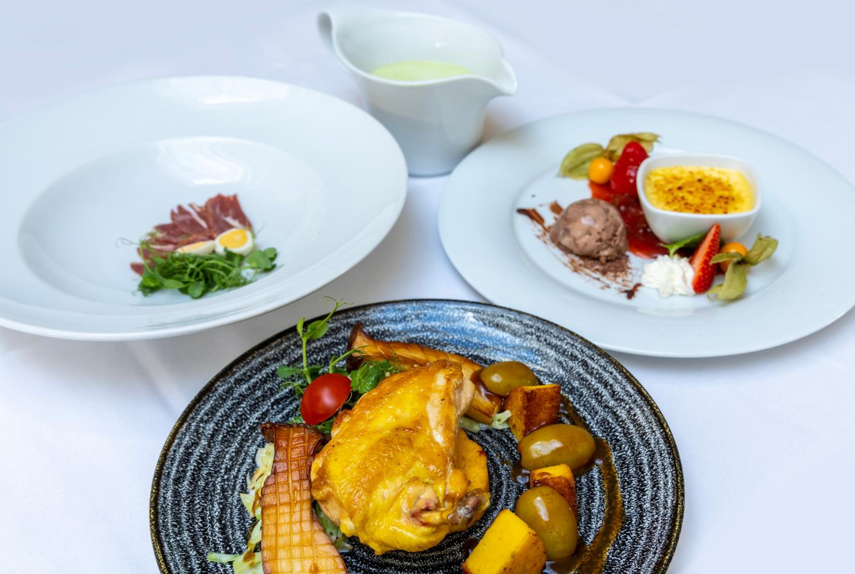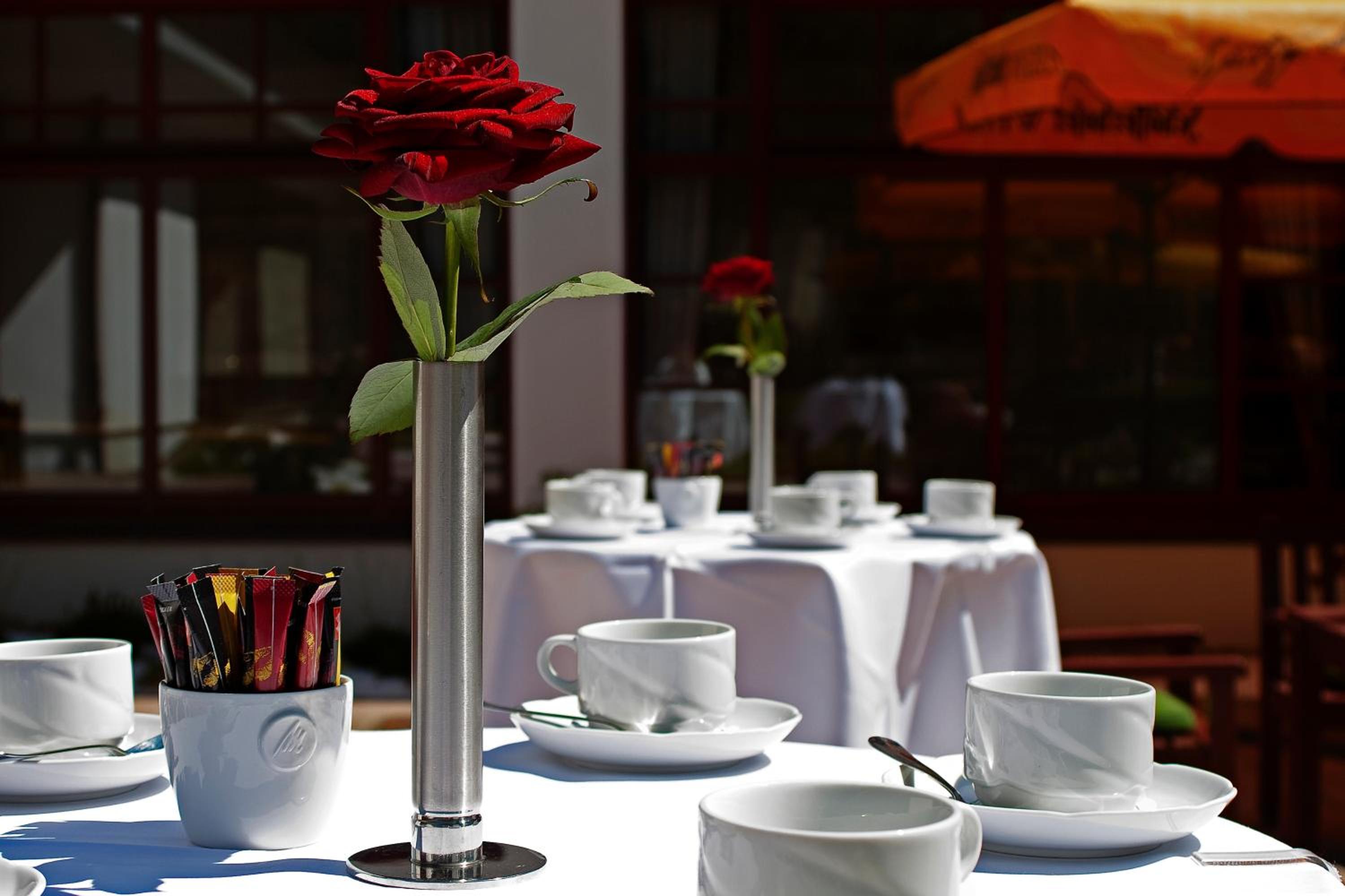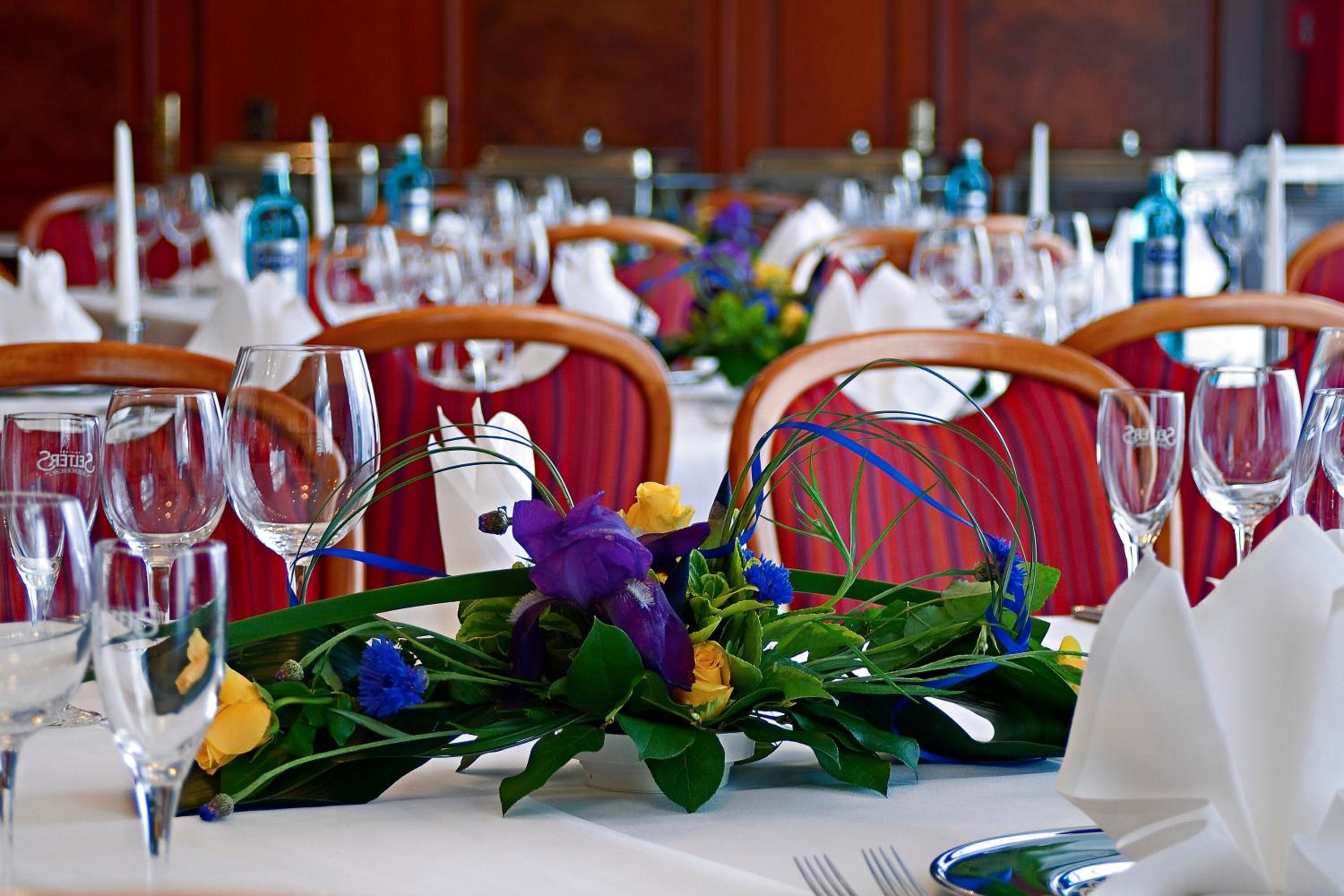 Indulge in varied regional cuisine at the hotel's Uns Hüsung restaurant. Guests can also unwind in the conservatory, bar, or garden terrace with a refreshing drink.