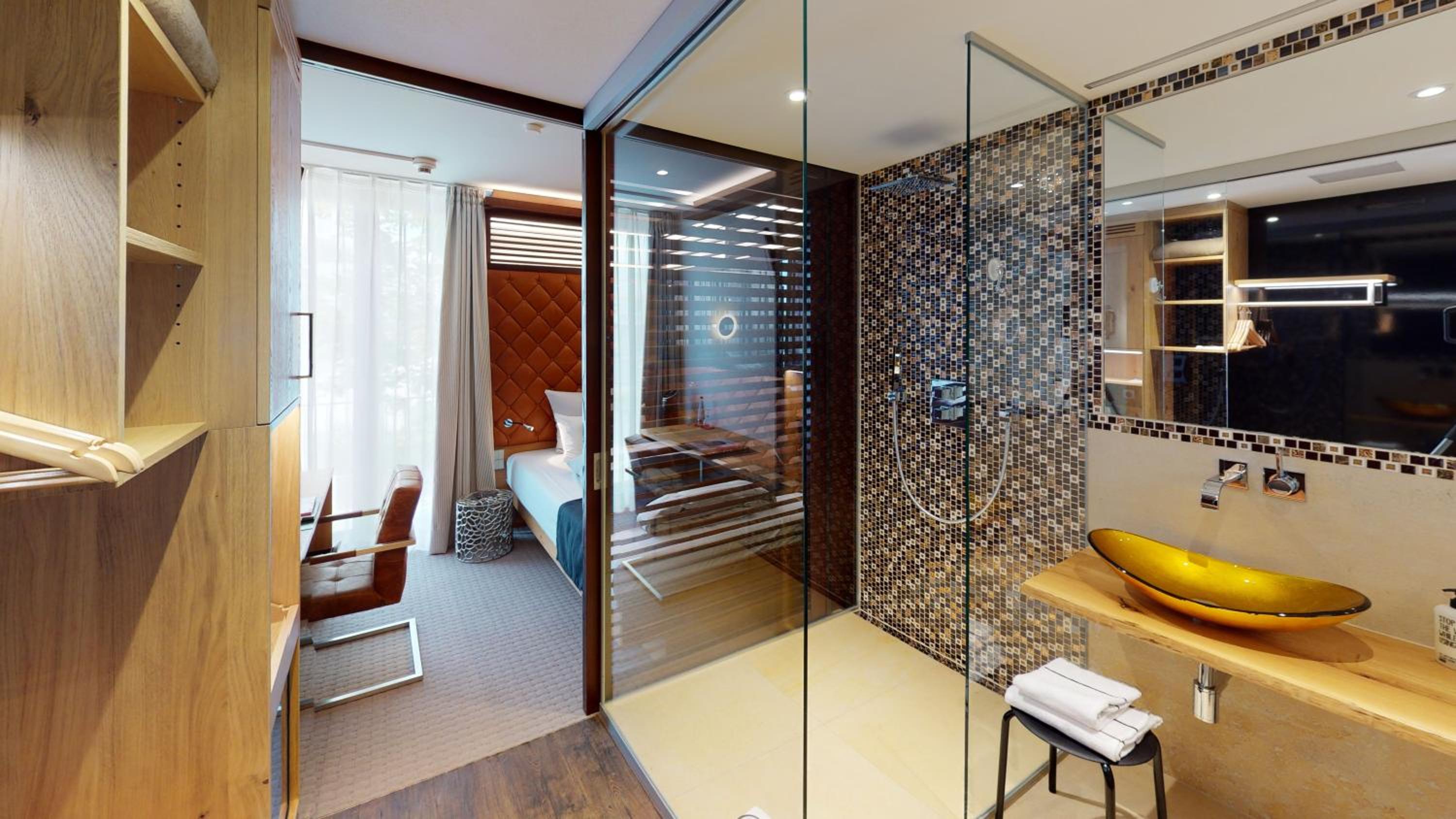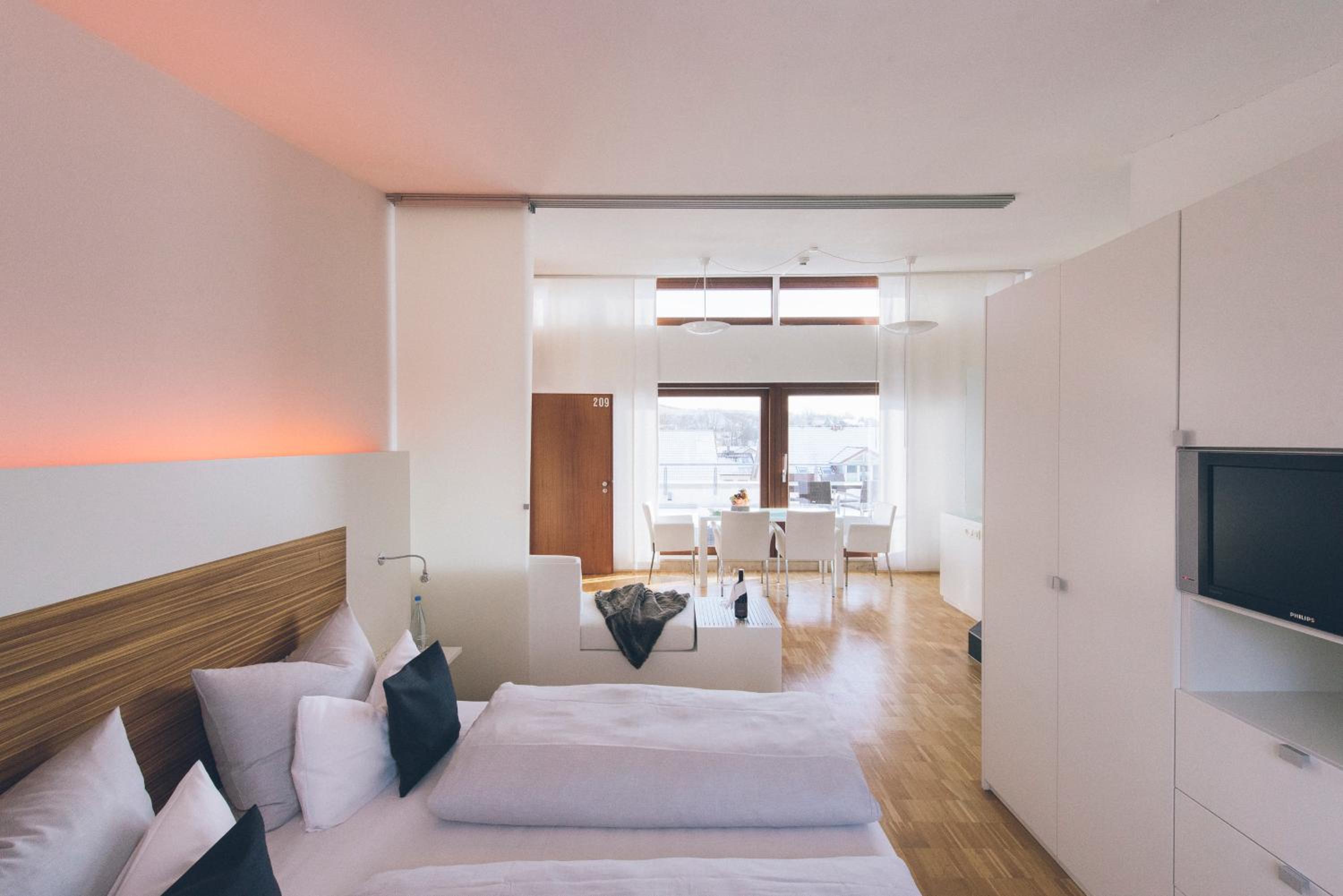 Discover a bright and modern design in our soundproofed rooms at Das Wildeck Hotel & Restaurant. Enjoy free WiFi, private parking, and even a complimentary minibar in select rooms.
