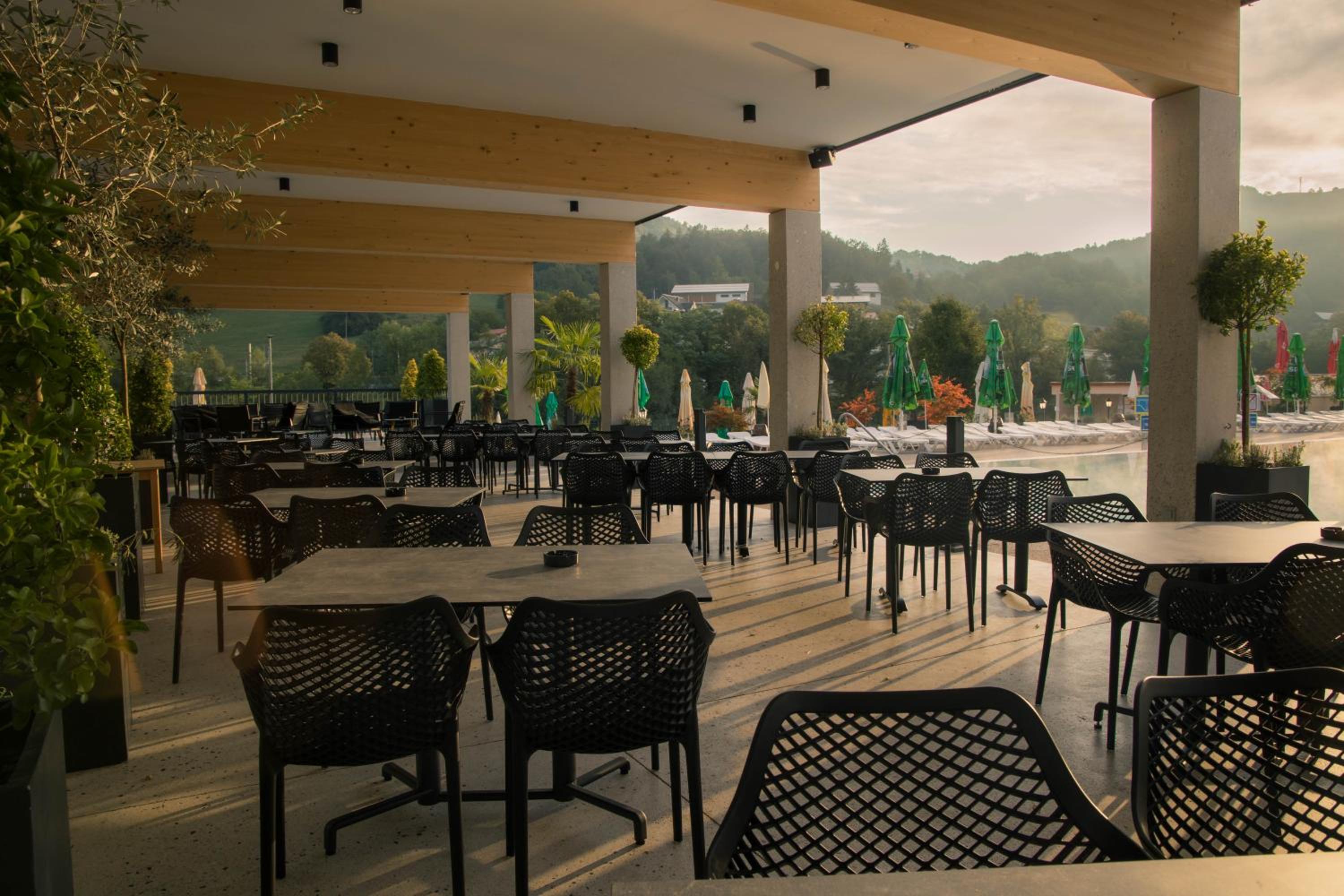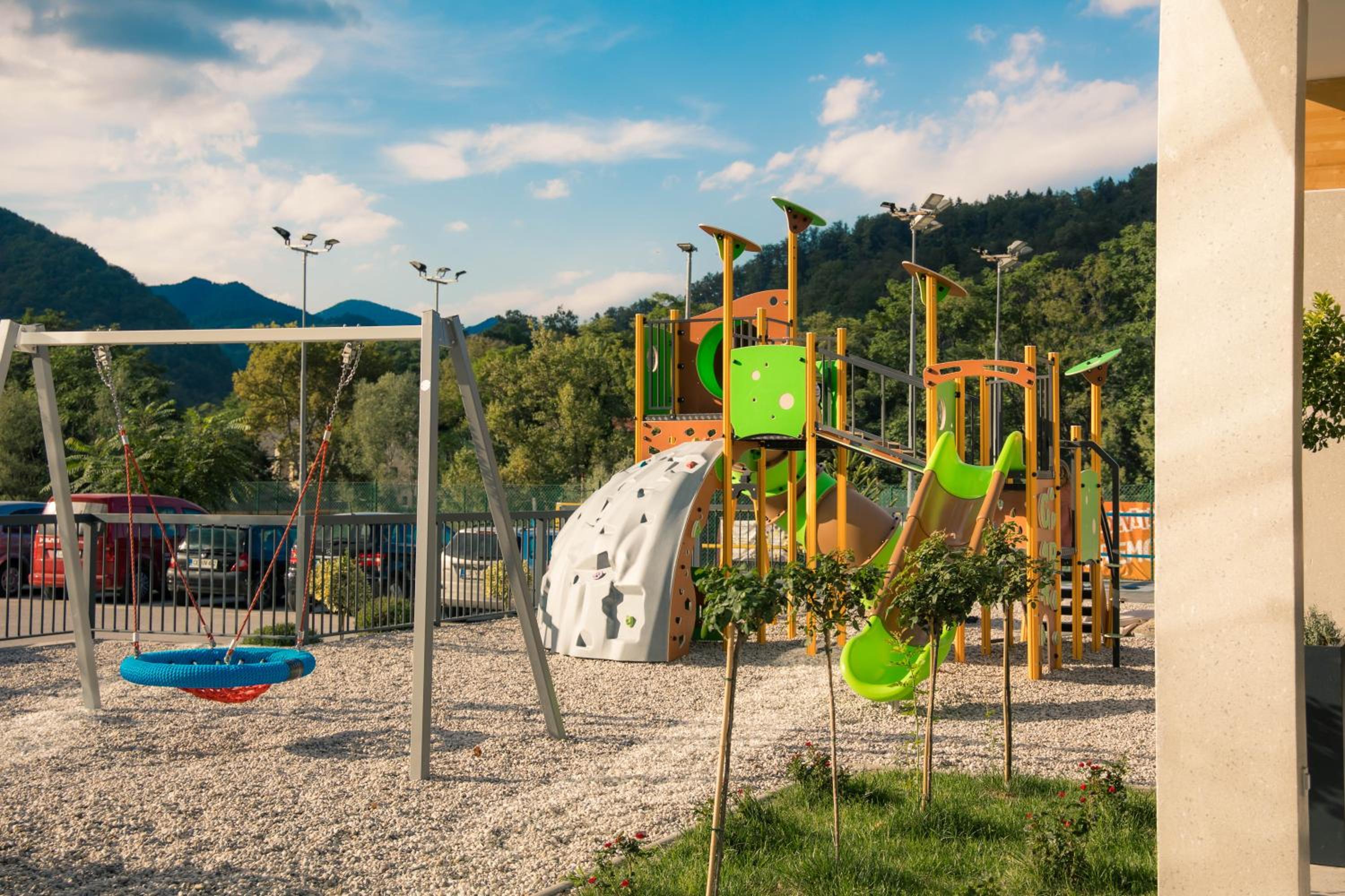 Hotel AquaRoma, nestled in nature just 500 meters from Rimske Toplice center, offers air-conditioned rooms with modern amenities and stunning pool or mountain views.