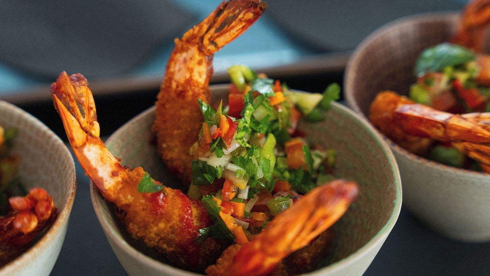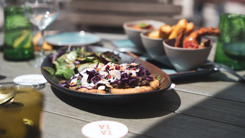 Indulge in a delicious meal at T.A.T.A or enjoy a refreshing drink at our bar/lounge.