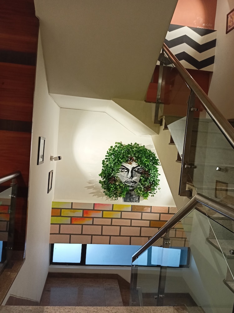 This hotel deserves a better rating than it has. Regardless of the fact that it is overpriced and not really a boutique hotel, it’s in a very good neighbourhood in Delhi, access to the airport is straightforward, it’s clean, safe, friendly and comfortable. They will arrange a car for pick ups and drop off (the car had working seat belts) at railway stations and the airport - just contact them direct rather than through the Hotels.com app (no response through the app, but very good communication once communication started). The restaurant is very ordinary, but if you can get across the road there are other eateries within a reasonable distance.