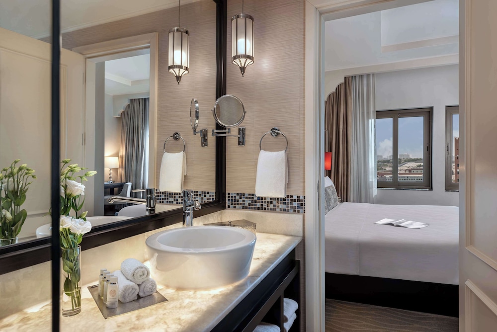 バスタブがありゆっくりできました。また海外ホテルでは珍しくスリッパ、バスローブ、歯ブラシもありました。部屋の鍵を開けてすぐ部屋かと思いきや廊下がありそしてまた鍵をかざして部屋という作りでちょっと変わってるなと思いました。水は500mIのペットボトル2本あります。ショッピングモールもすぐそばで、お土産やゴハンの調達には困りません。