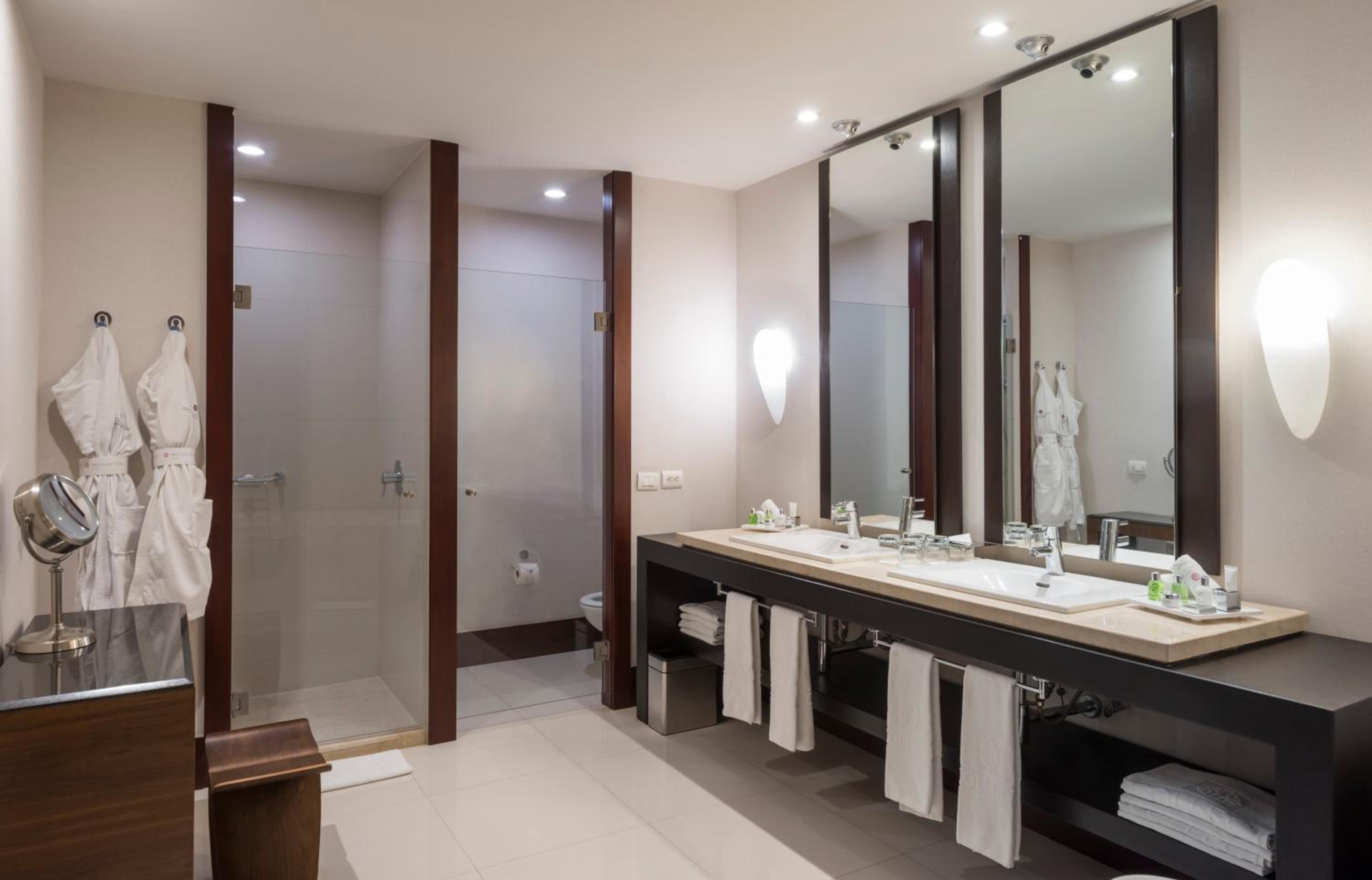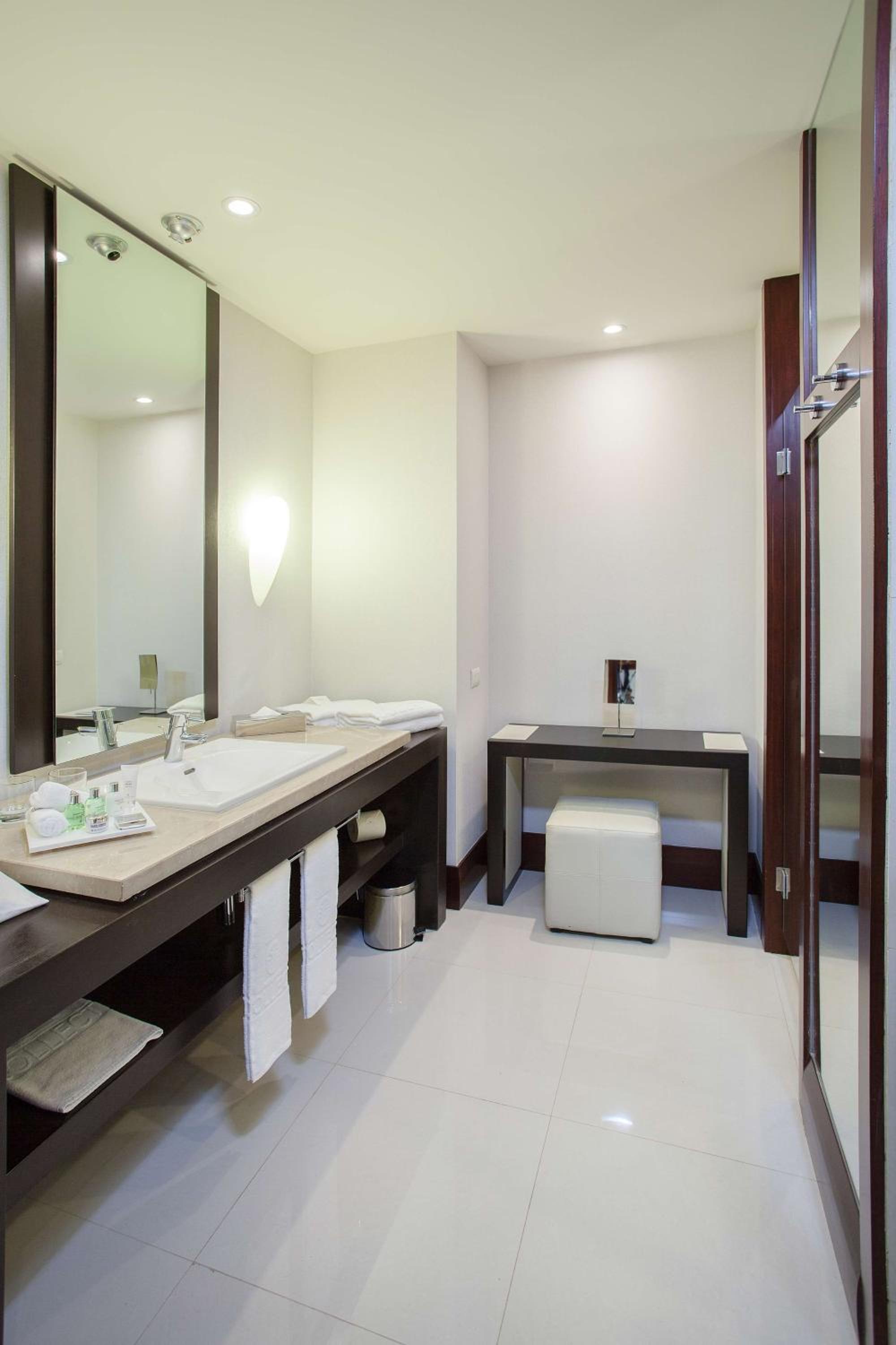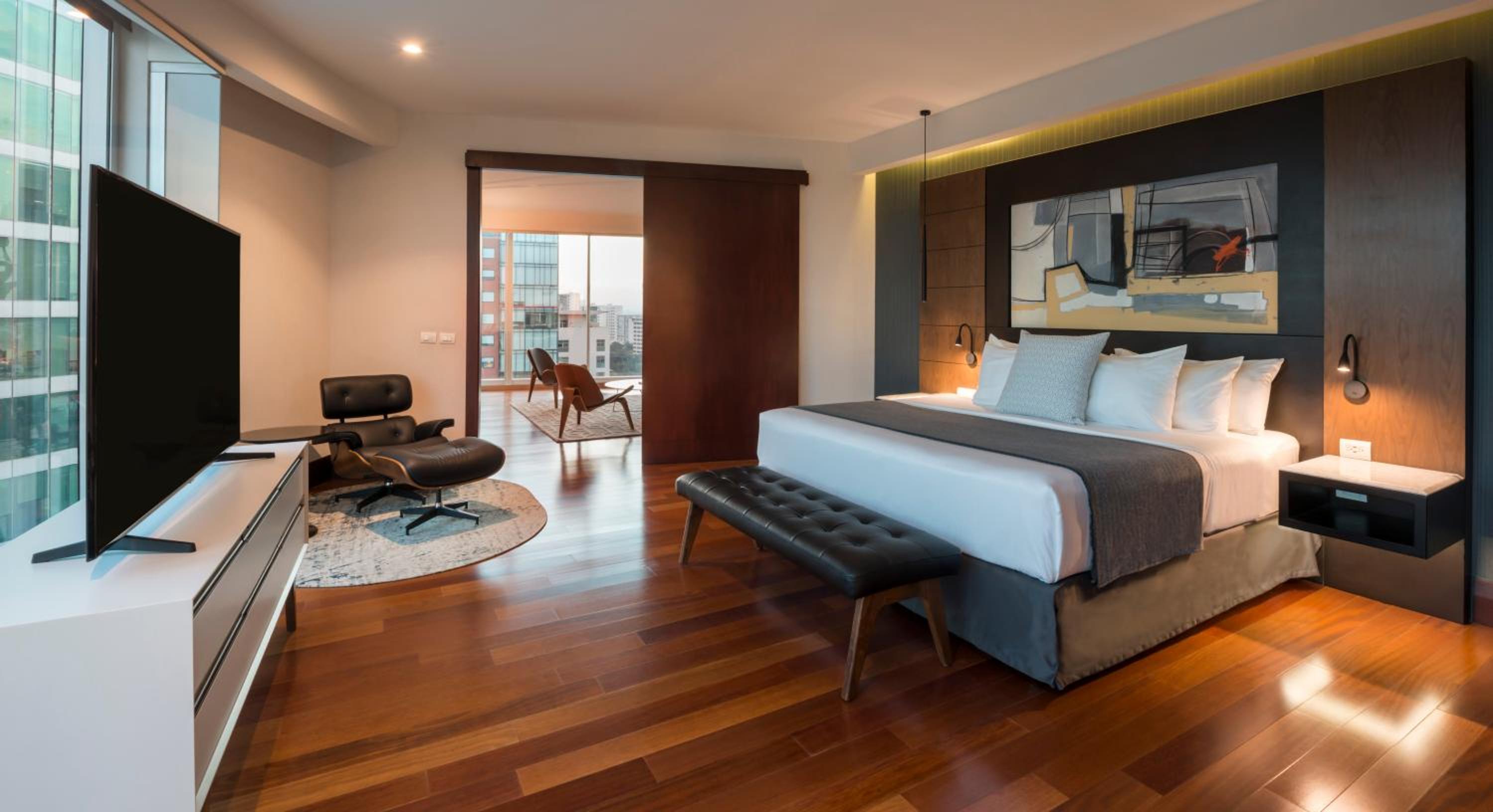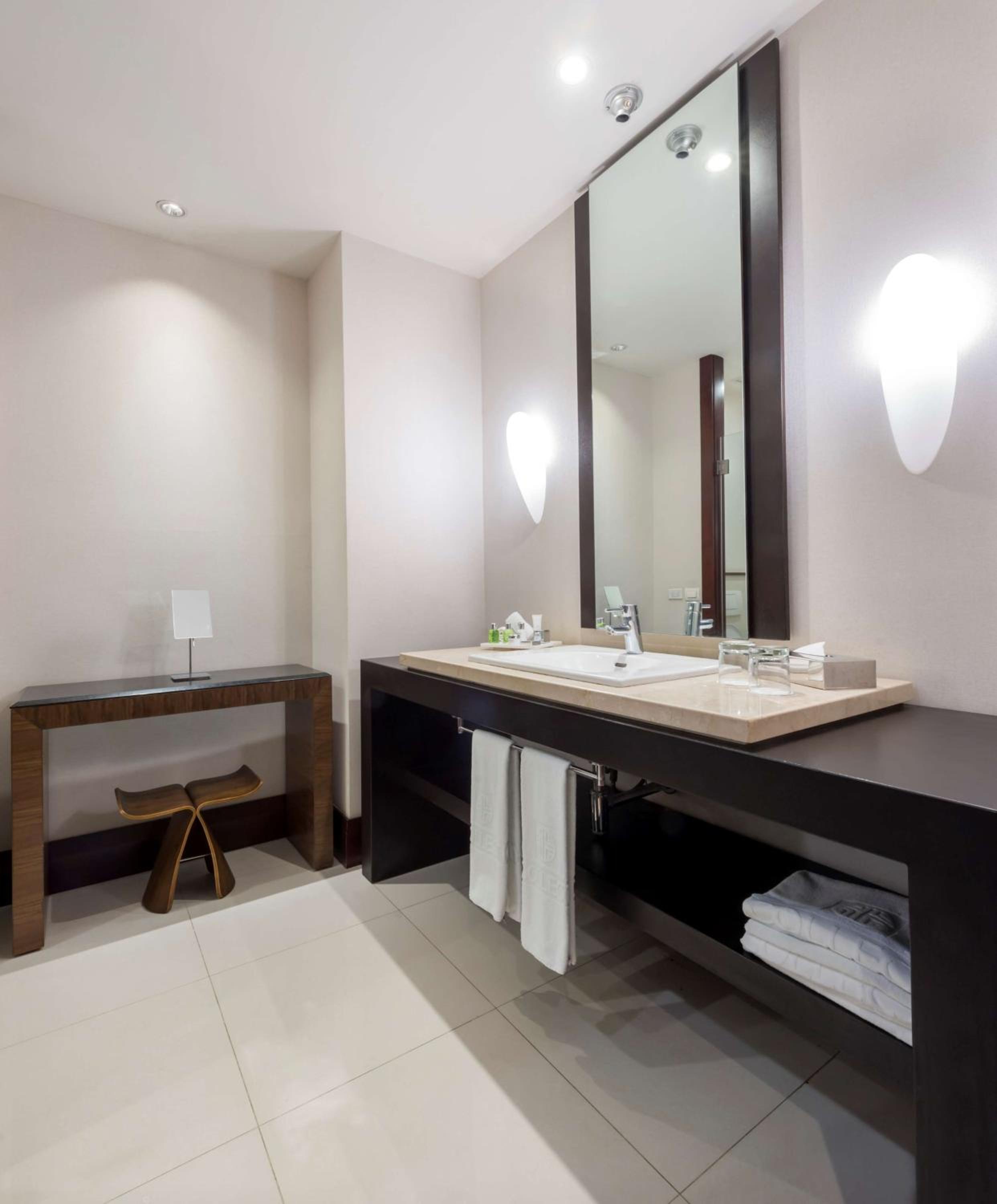 Relax in the hotel's contemporary rooms adorned in soothing earthy hues, each providing breathtaking city views. Unwind with amenities like a flat-screen TV, minibar, and a luxurious bathroom.