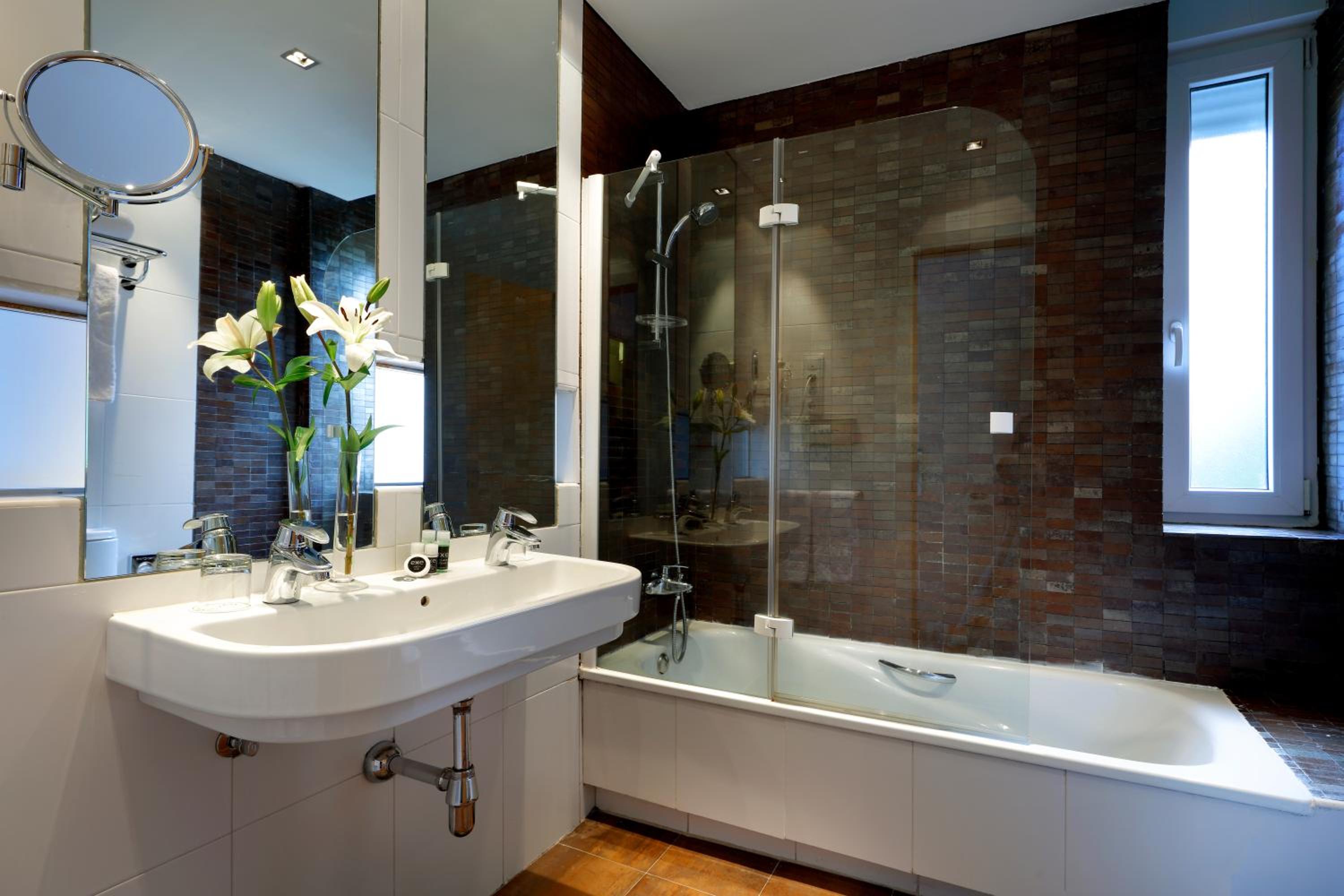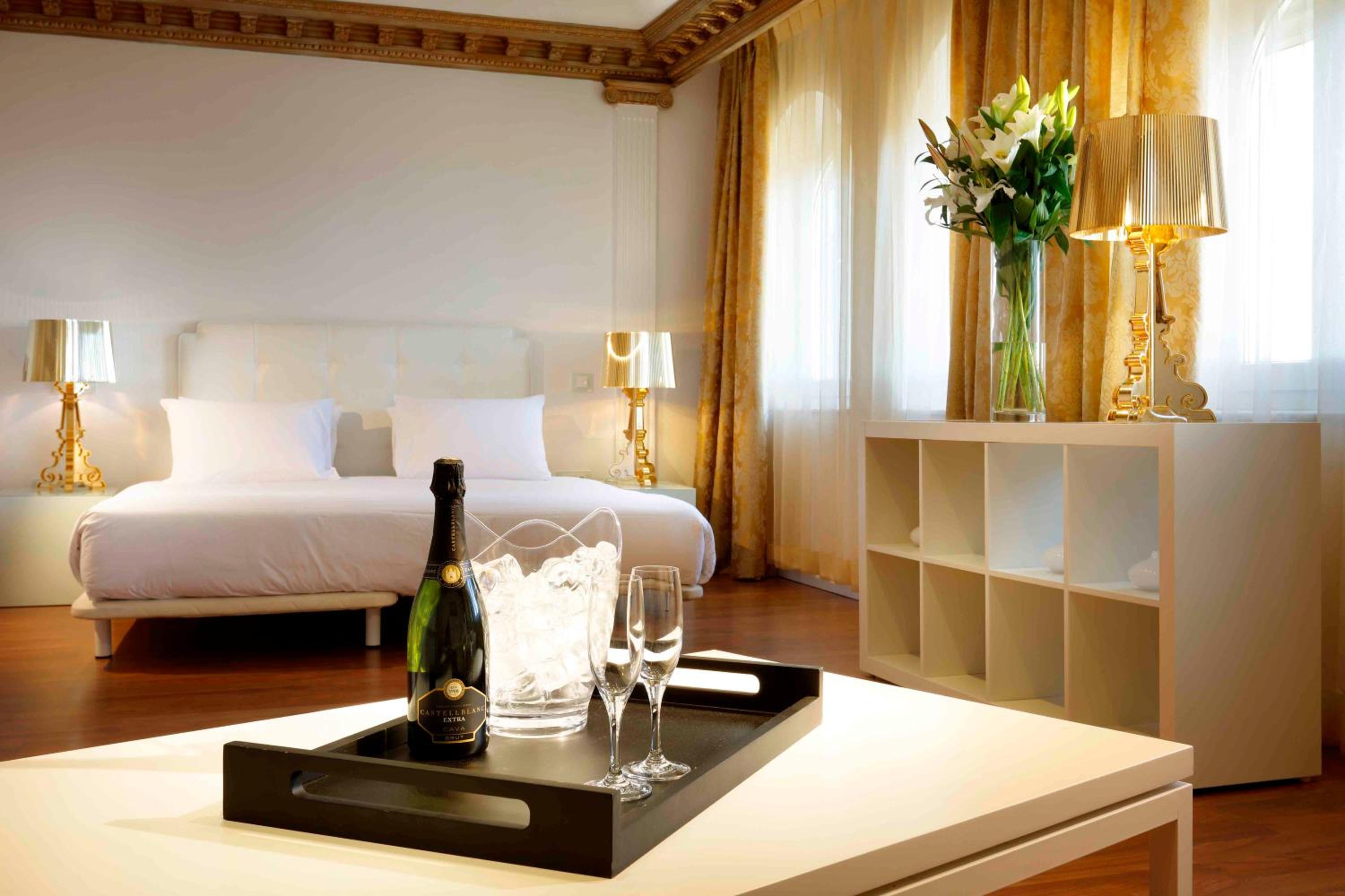 Indulge in free Wi-Fi, a relaxing sauna, and an outdoor swimming pool surrounded by lush gardens. Unwind on the terrace overlooking the hotel's beautiful façade. The blend of original features with contemporary design, including Philippe Starck lighting, offers a unique stay.