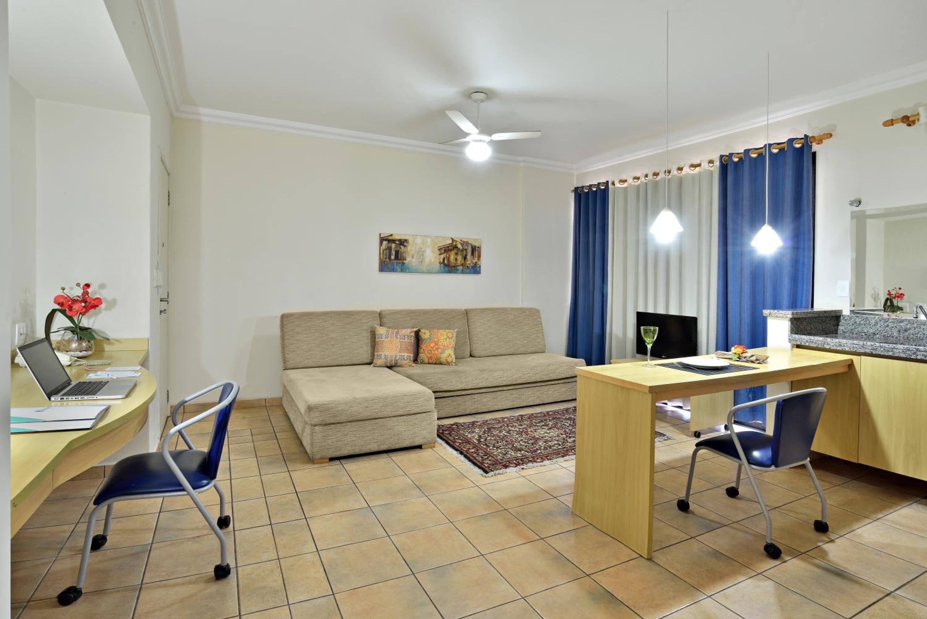Experience the ultimate blend of comfort and convenience at Plaza Inn Flat Araxá. Indulge in our luxurious apartments equipped with cable TV, free internet, and a relaxing terrace. Enjoy our top-notch amenities including a gym, swimming pool, sauna, and complimentary breakfast buffet with homemade regional pastries.