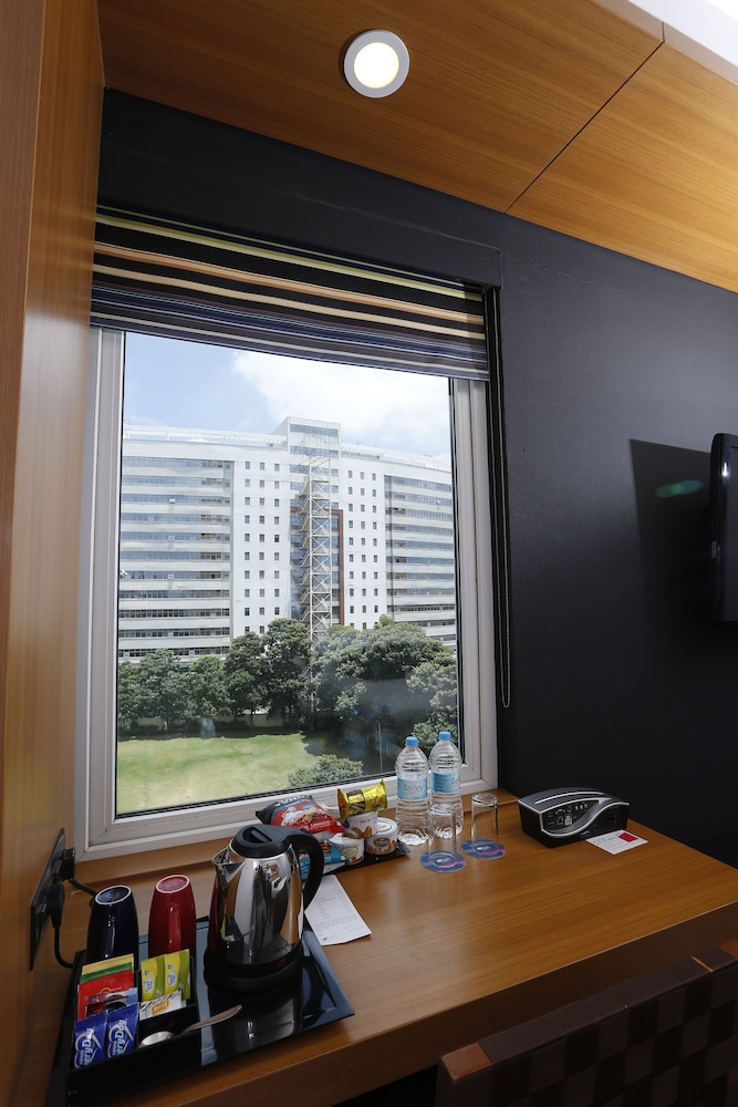 This hotel is slightly away from the centre but opposite to a major hospital. Stayed there for 6 days as i needed to be next to hospital. The breakfast buffet was outstanding. The carpets are worn out, Electrical points at different places and no single point control. Tiles inside was black and very dull. Swimming pool could not use due to wedding.