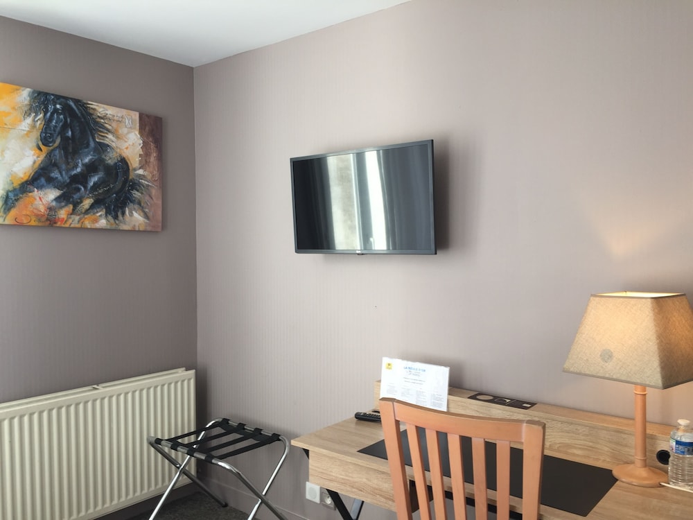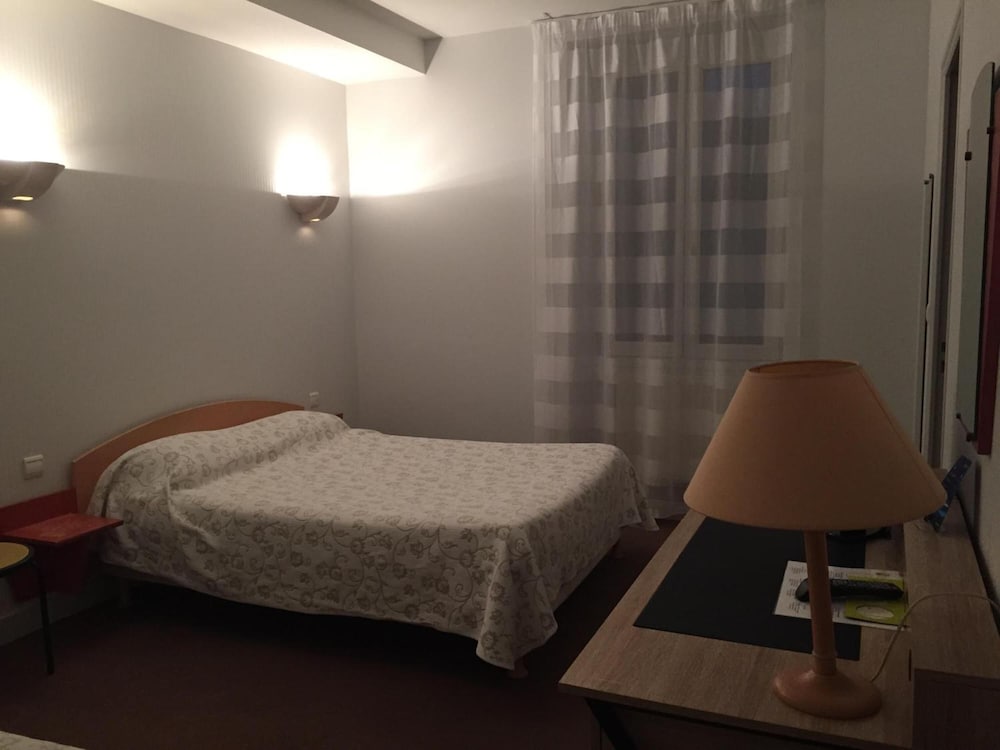 Chambre simple avec le confort nécessaire, volets et rideaux, grande douche, coin bureau pour pouvoir travailler, literie très confortable. Super le côté restaurant avec choix, bon rapport qualité prix. Ascenseur, très bonne isolation petit bémol ça serait juste l'écran de la télé un peu petit pour la distance avec le lit....