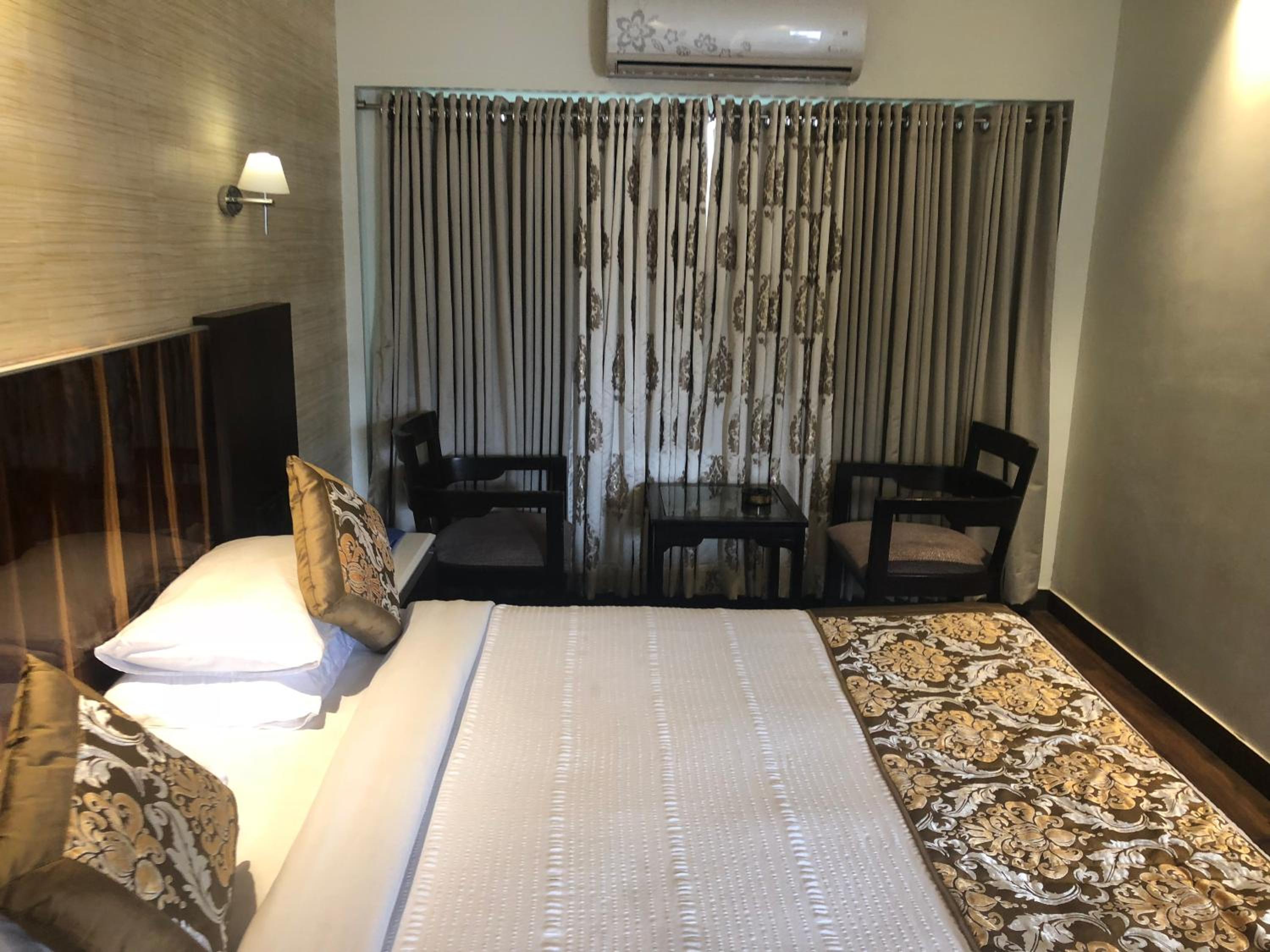 Bathrooms were messy. Uncomfortable to use. Hotel was catering a marriage and party on daily basis within hotel lawn and sound was disturbing till 2 pm.