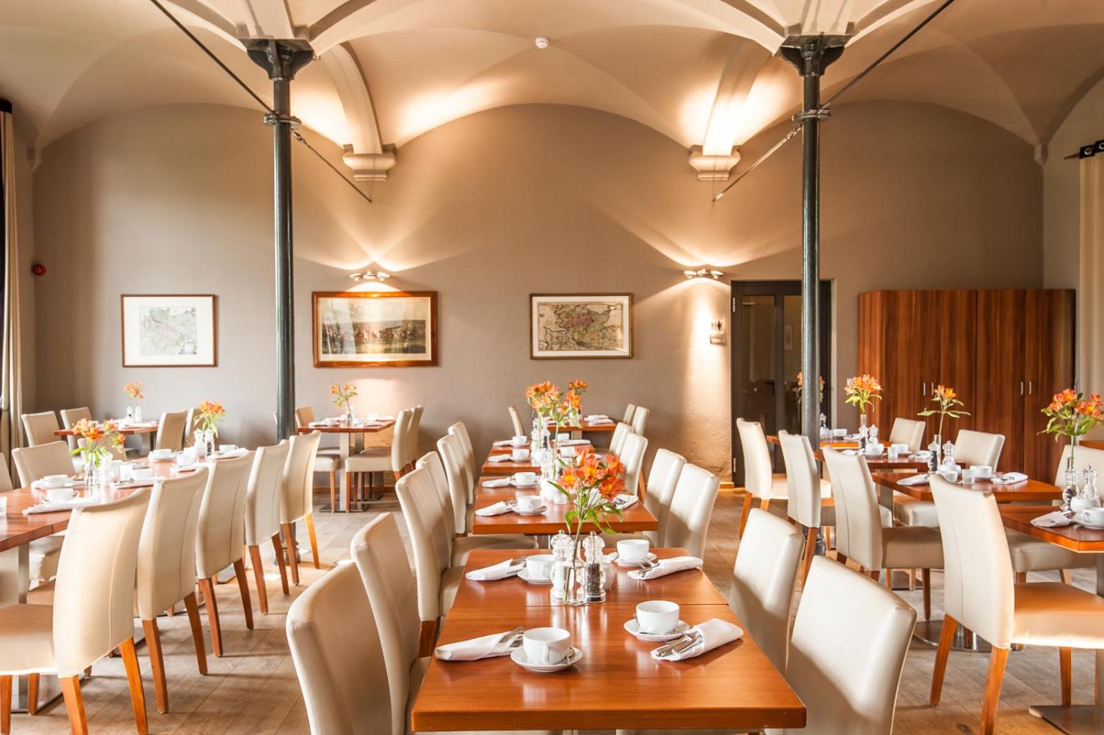 Indulge in relaxation at the small spa area offering Finnish and infrared saunas, massages, and cosmetic treatments. Start your day with a rich buffet breakfast and savor fine Mecklenburg cuisine at the Castle Restaurant 1745 or regional dishes at the Brasserie.