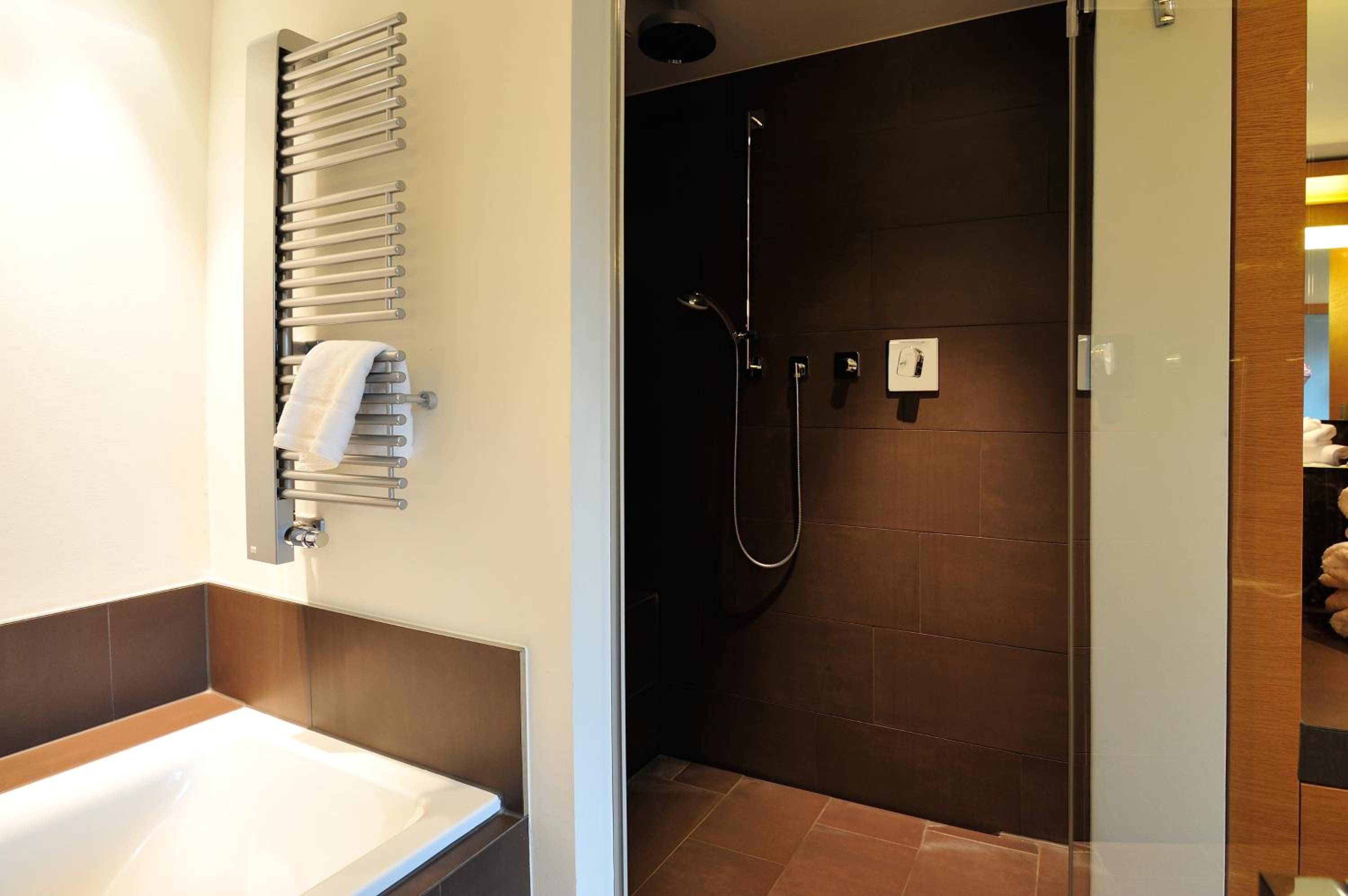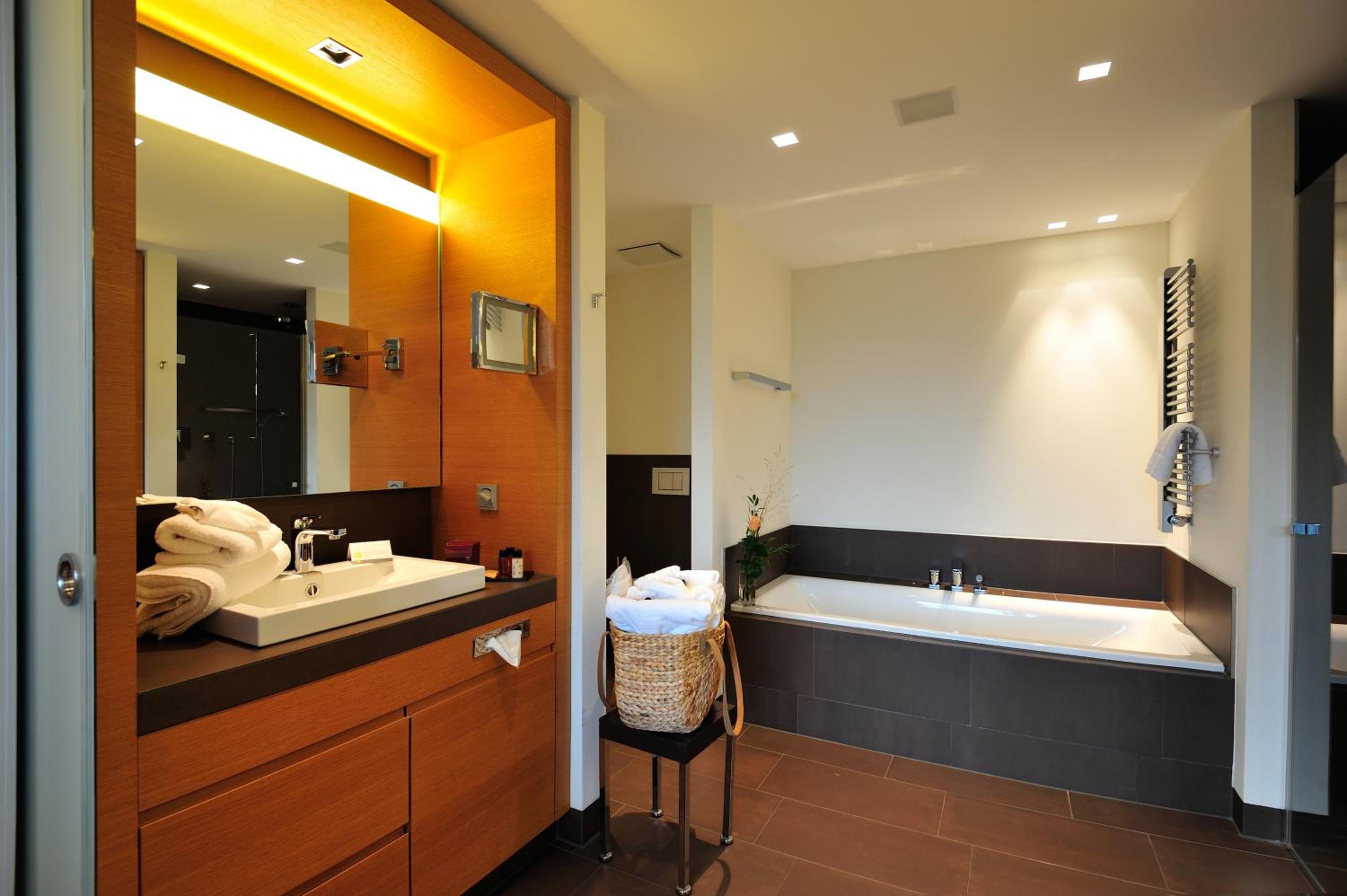 Die Bedienung der Beleuchtungsanlage hätte eine längere Beschäftigung mit der digitalen Steuerung erfordert. Diese Zeit wollten wir uns bei einem kurzen Aufenthalt von nur einer Nacht nicht nehmen. Von daher haben wir ein bisschen rumexperimentiert. Die Sauna und auch die Brasserie liegen in einem Gebäude gegenüber des eigentlichen Hotels, weshalb diese Wege bei schlechtem Wetter mit Jacke, Schirm etc. zurückzulegen sind. Das ist bei einer Nutzung der Sauna entsprechend zu berücksichtigen...