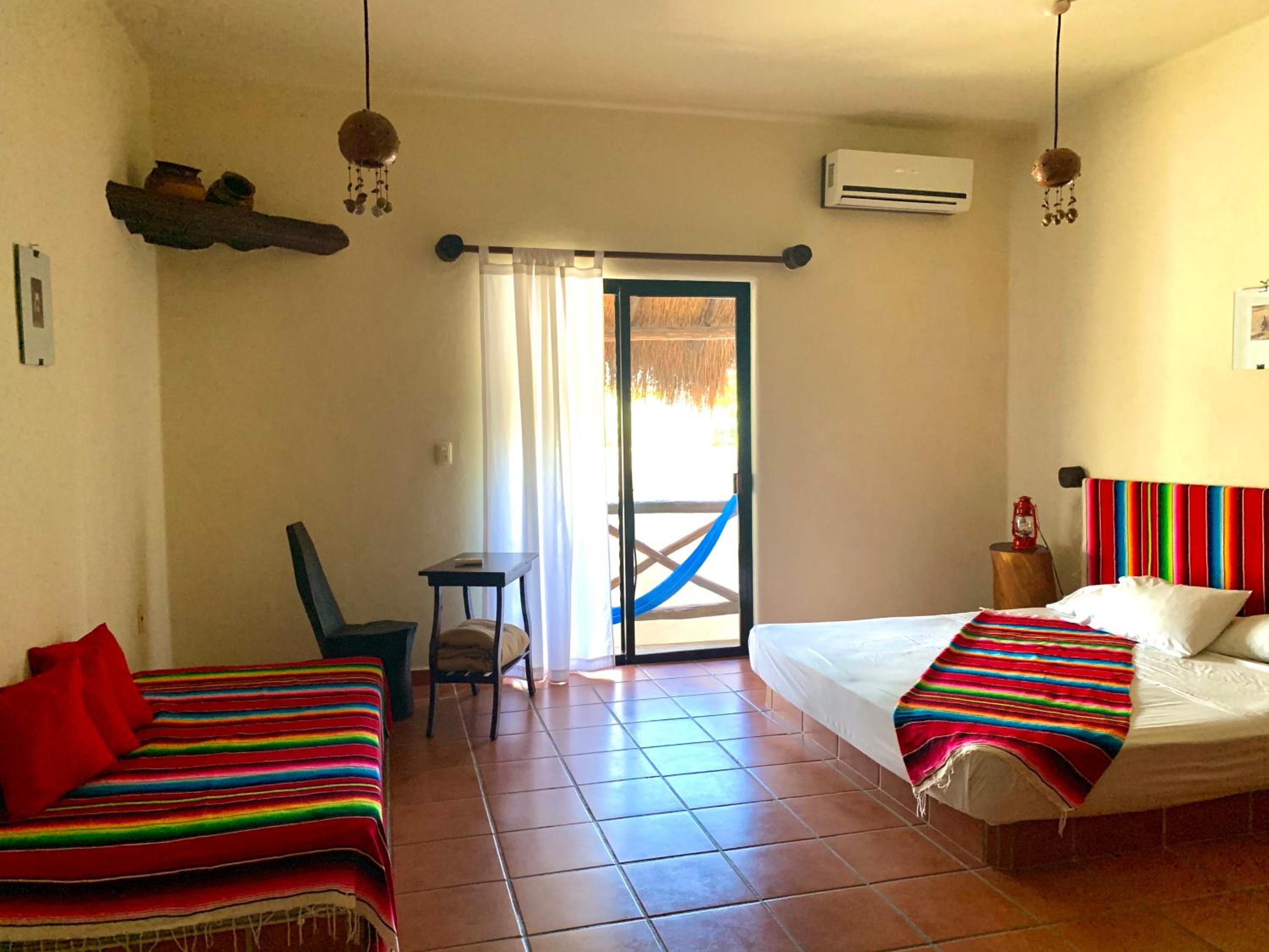 Experience comfort and relaxation in our spacious rooms equipped with private bathrooms and enjoy the traditional hammocks outside each room for a true taste of Tulum's charm.
