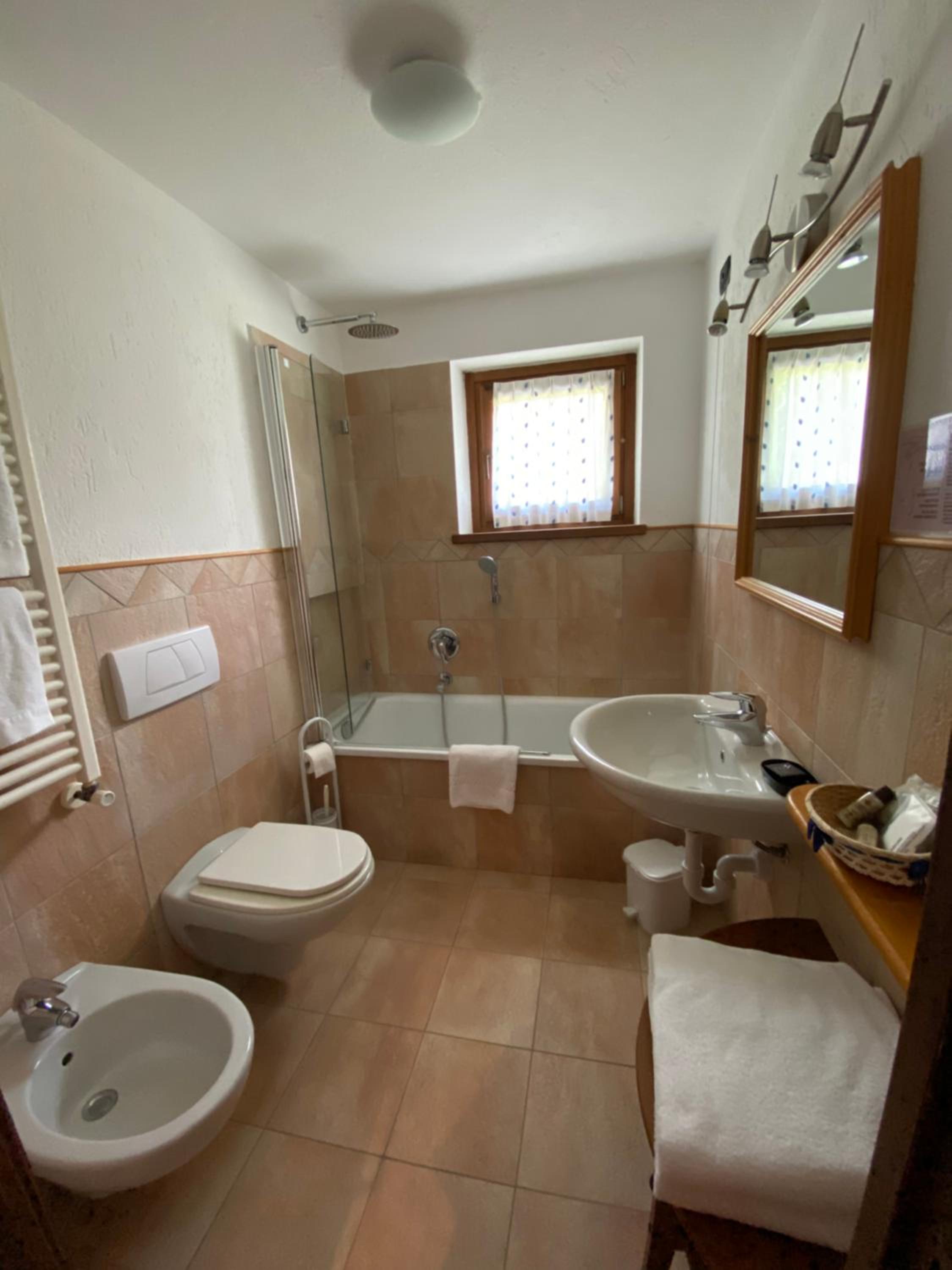 Il bagno della nostra camera non aveva doccia ma vsca e con soffitto spiovente poco agevole fare doccia.