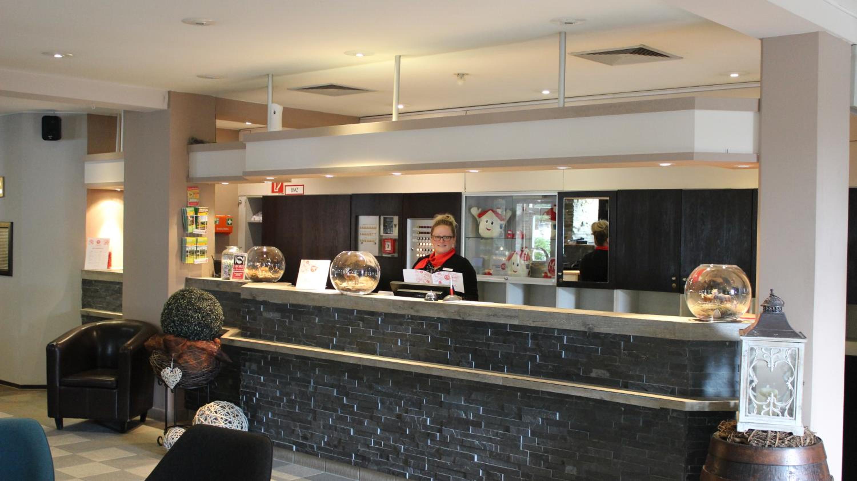 Personeel aan de balie is niet al te vriendelijk.