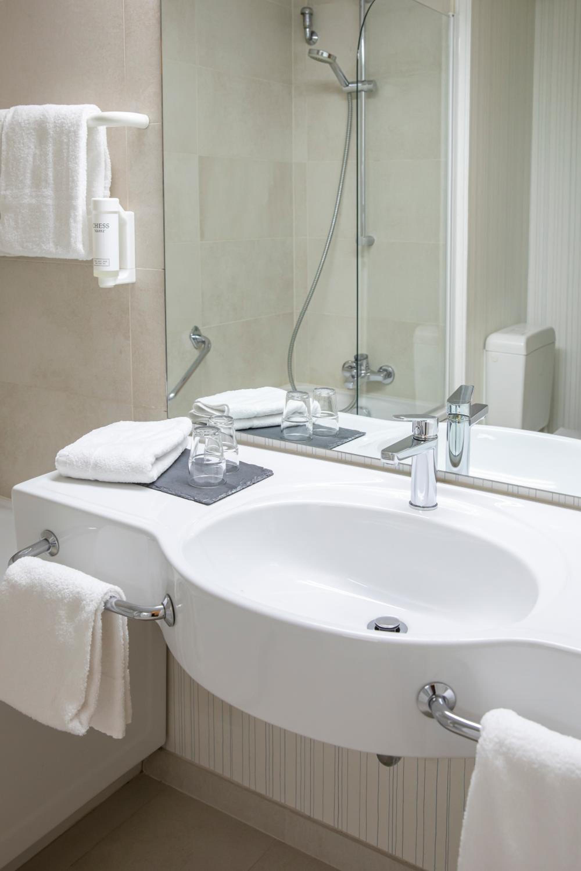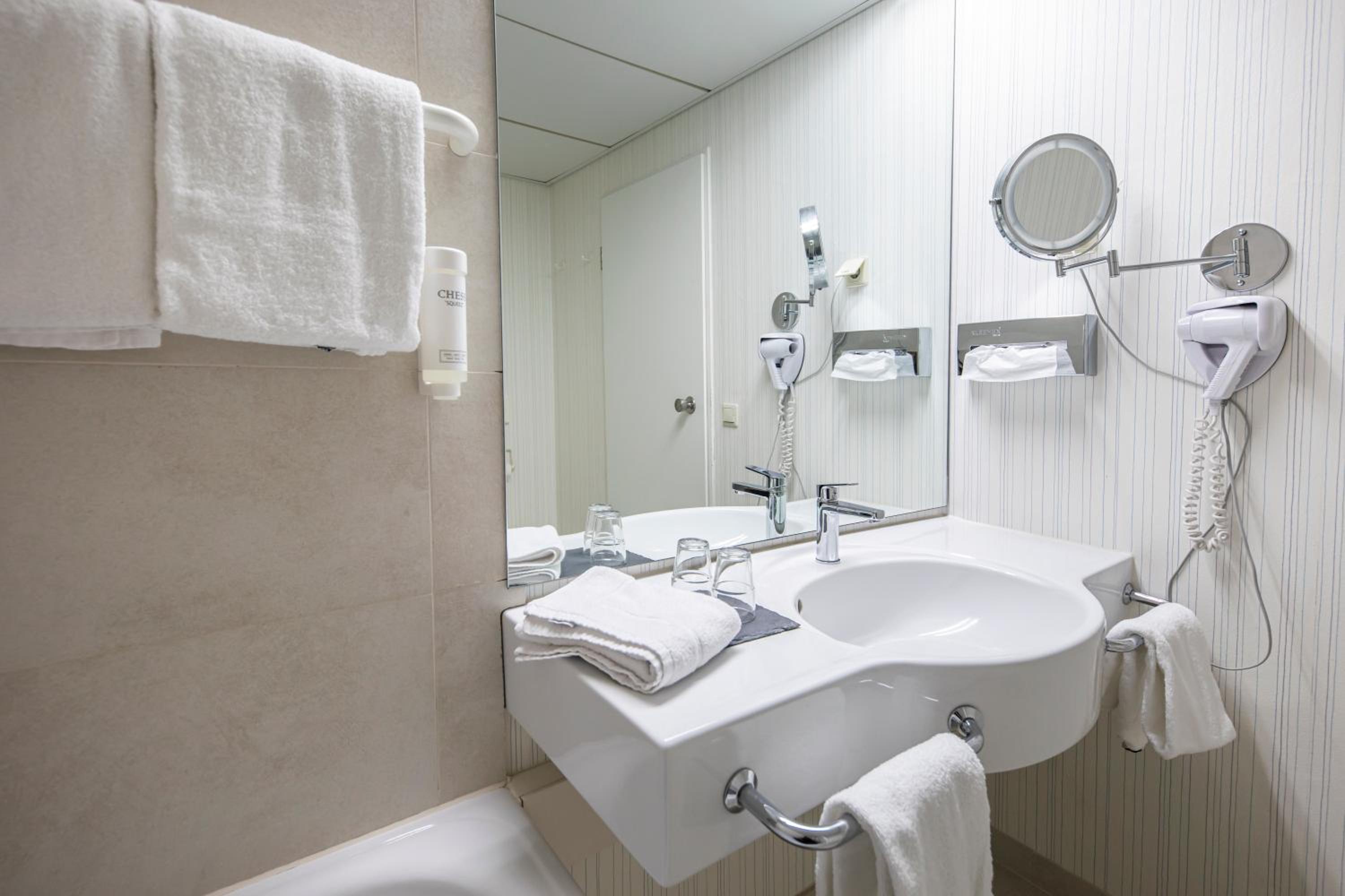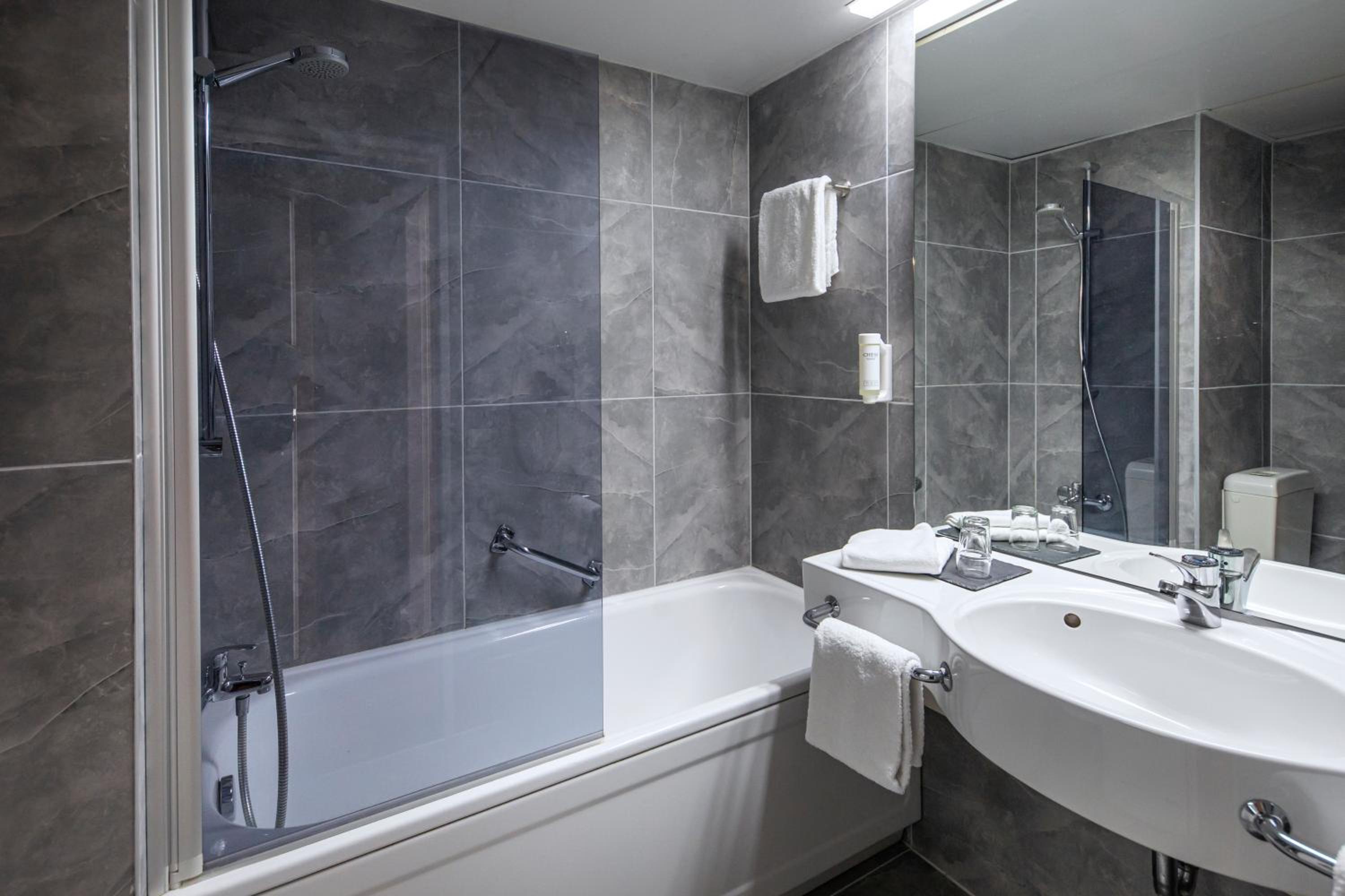 Luxurious Amenities: Unwind in the large indoor pool or pamper yourself with a visit to the hotel's sauna. The modern bathrooms with provided toiletries ensure a comfortable stay.