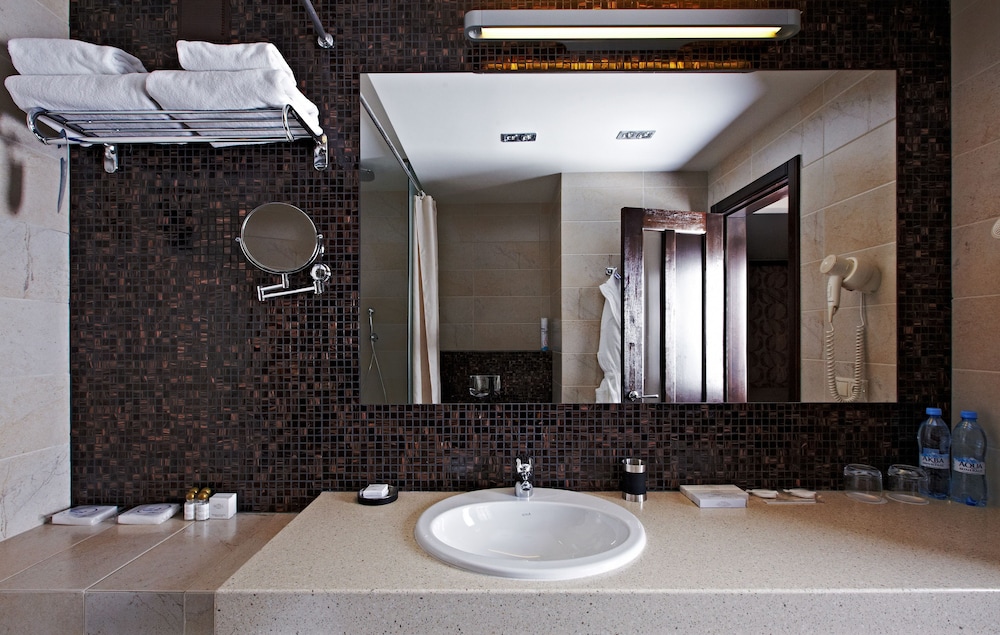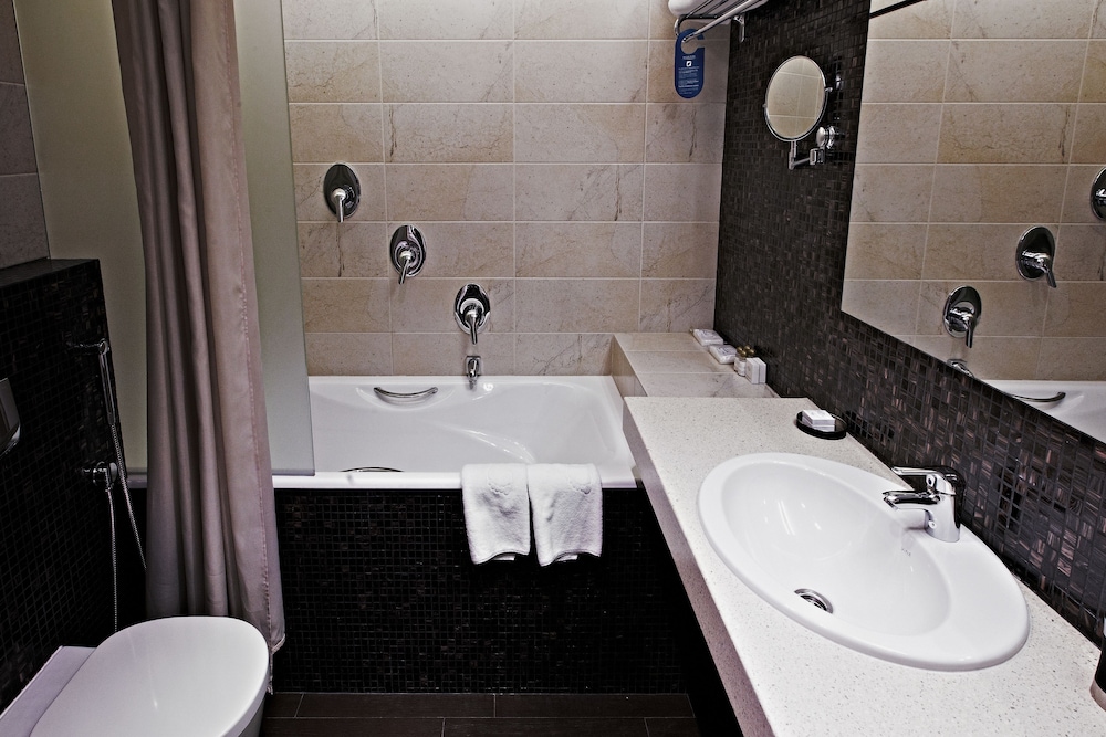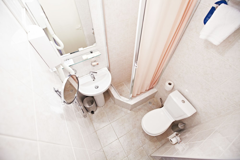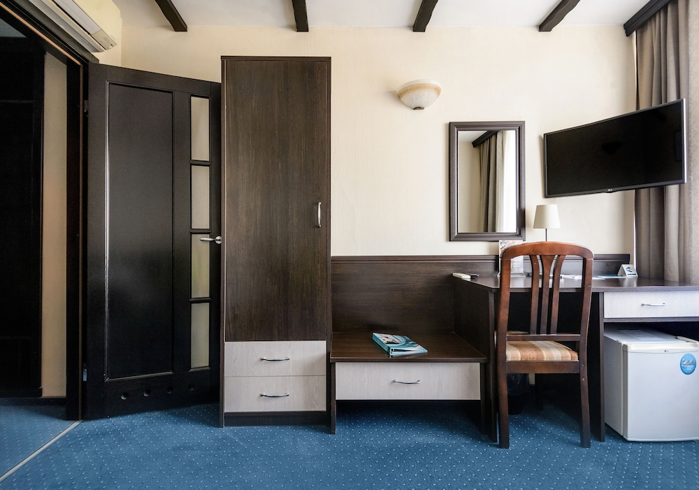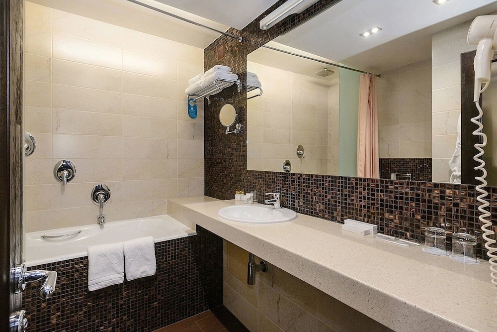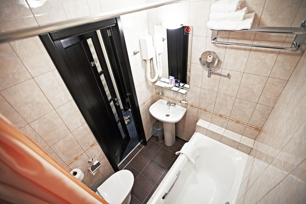 The room is small in size, there is a work desk with sockets, a kettle, tea bags, 2 bottles of water are brought daily. Double bed, comfortable with chiseled lamps. The bathroom has a bathtub and a weak hotel hairdryer. Hot water does not come straight away. There is a mini fridge. Normal Wi-Fi. Breakfast for a three-star hotel is excellent and varied, scrambled eggs, scrambled eggs, cereals, salads, vegetables, a lot of pastries, juices, good coffee.
