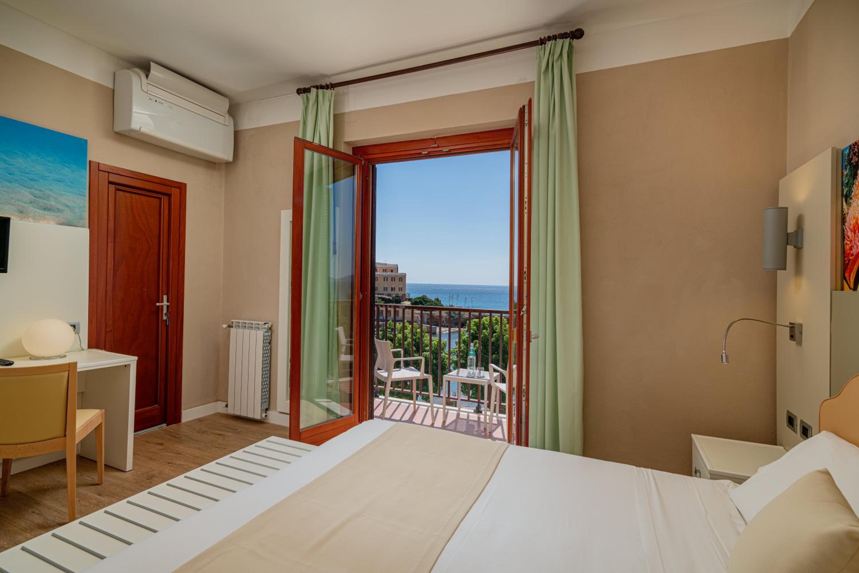 Hotel El Balear, with its Catalan charm, stands proudly overlooking the Alghero Bay, offering unparalleled panoramic views of the sea. The only beach-front hotel in the city center, it provides easy access to a small beach and a unique sea rock platform just a short stroll away.