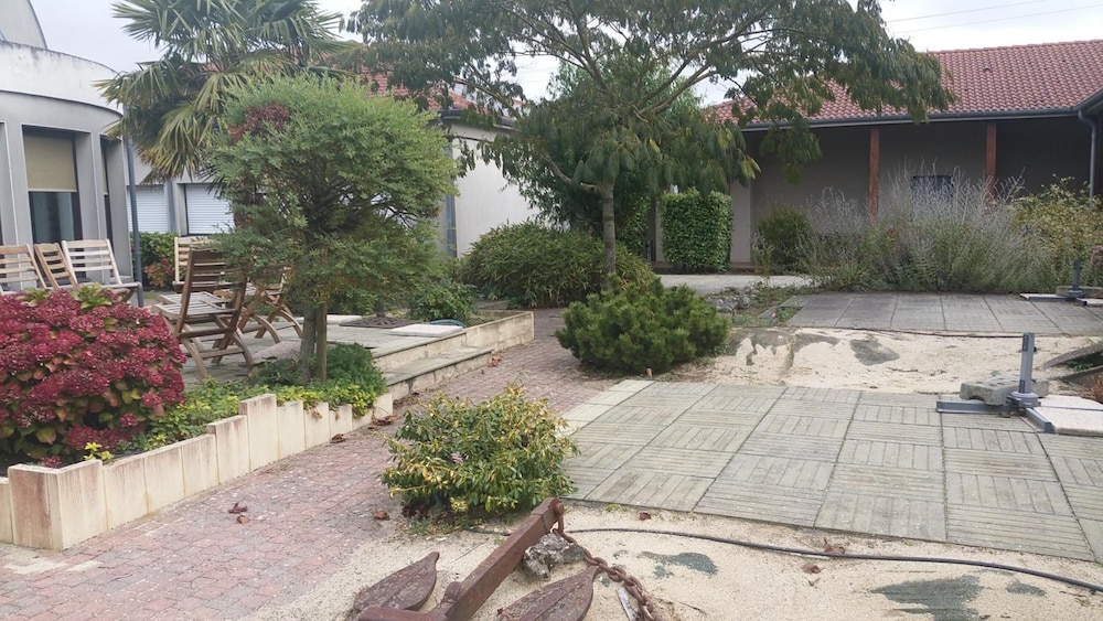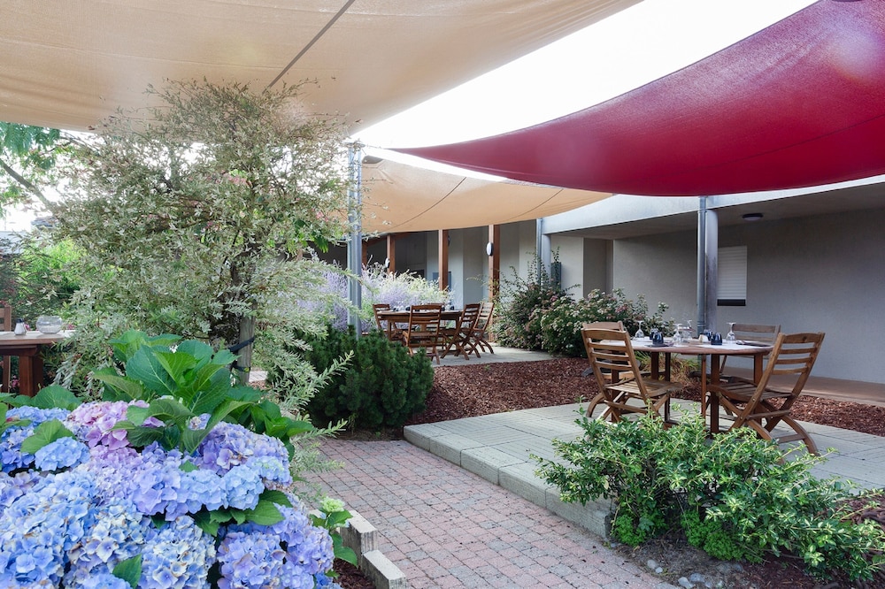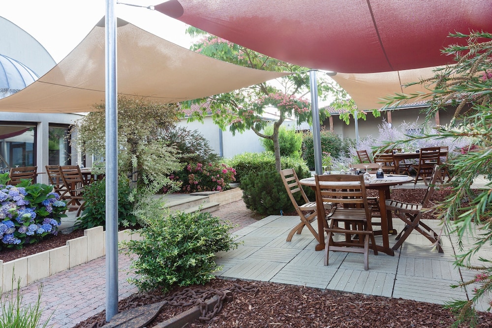 Terrace and Garden Views: Soak in the picturesque surroundings from the terrace and garden at The Originals City, Le Logis d'Elbée.