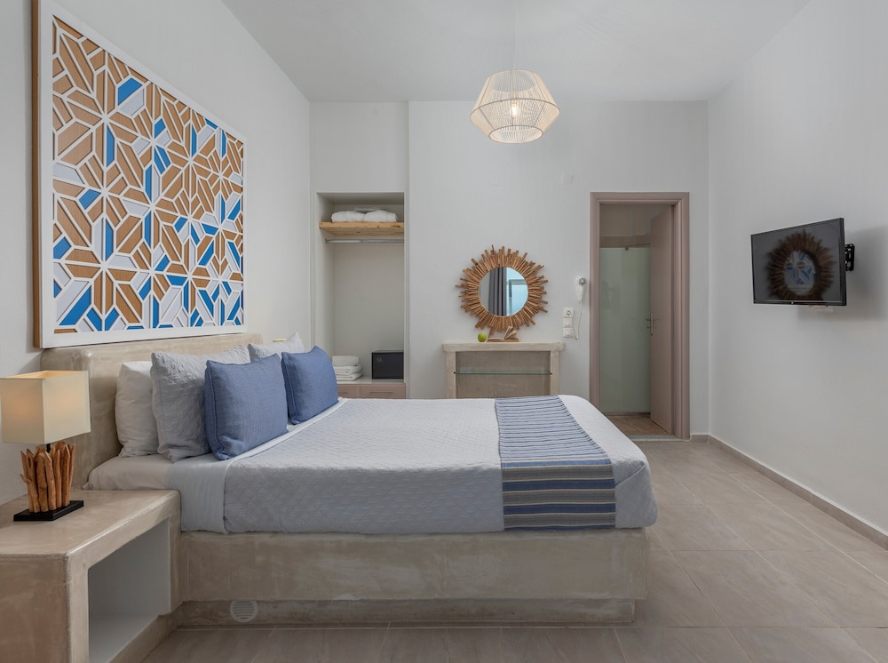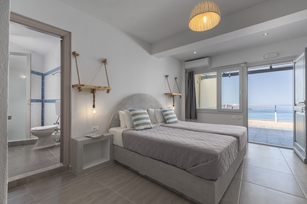 The location is very convenient with 5 minutes driving distance to Fira. Staff are very friendly and helpful. They responded quickly when we had questions. They also helped us arrange transportation from port and car rental.