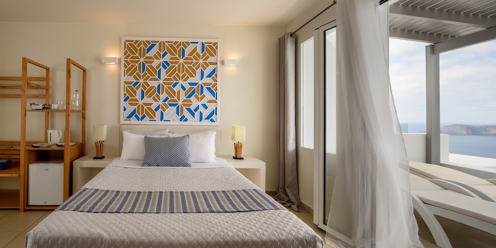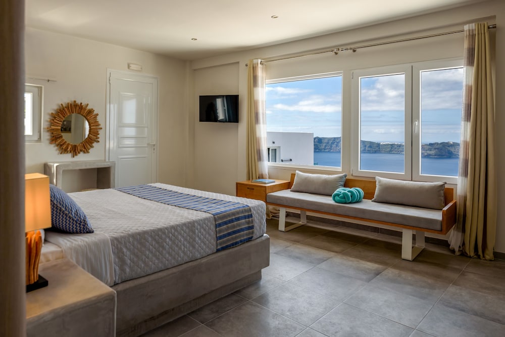 My wife and I stayed here for our honeymoon. Everything was perfect from the beautiful room overlooking the caldera to the pool, the delicious breakfast, great staff including the bartender who made great mojitos. Location is right by the Fira to Oia walking path and close to a lot of good restaurants. Sunset views are amazing. Would highly recommend.