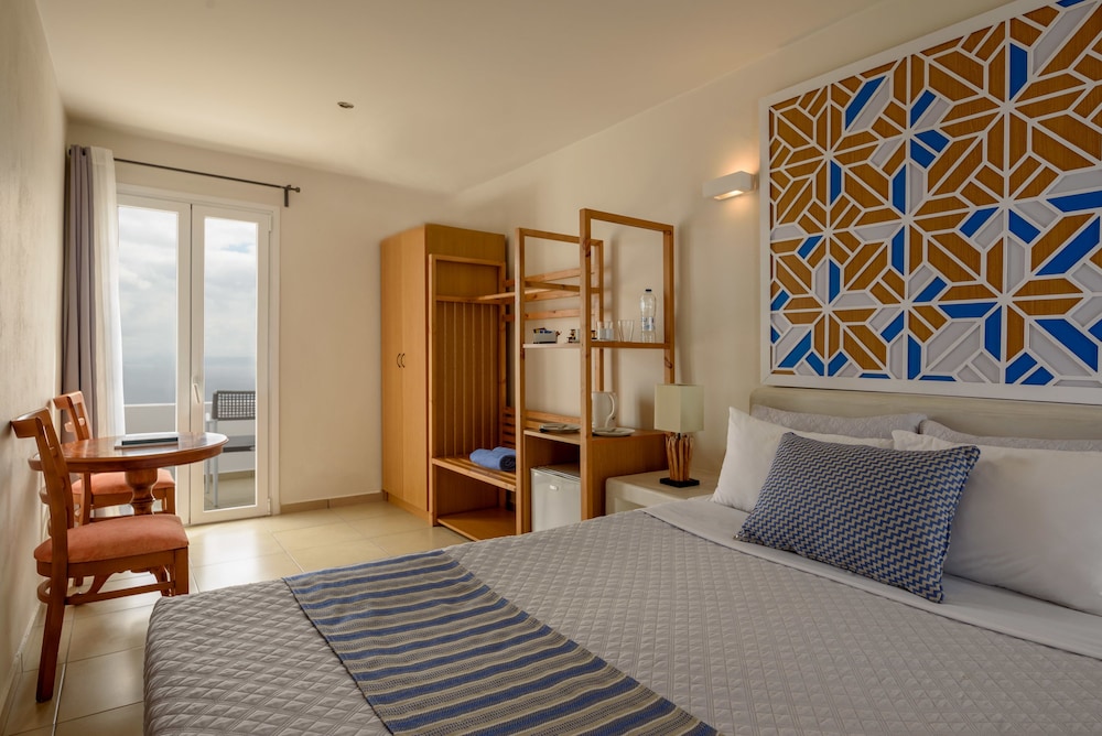The staff was amazing and very accommodating, but it was expensive compared to properties nearby, which we were planning to stay at, but family requested us to stay next door to their hotel. They had suites with a dining area, living room, and bedroom.. when for the same price, we got a sofa and a jacuzzi that was warm, rather than hot like you would expect. Staff did come in to clean and make the bed everyday, breakfast was nice to wake up to bright and early, but Fira is not walkable unless you want to walk > than 30 minutes each way. Transportation is paid at this hotel, whereas the neighboring one offered free shuttle service into town and other places as well as offered a coffee hour, etc. The reason my rating is so high is because the staff was amazing and we spent less time at the hotel out on excursions and hikes.