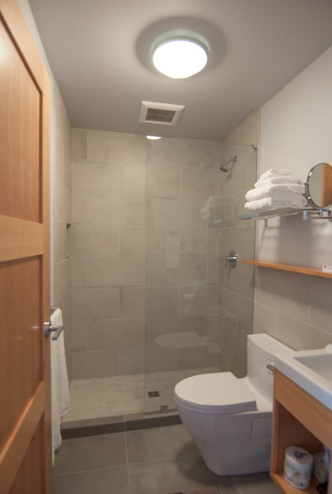 No elevator. No safety hand rails in shower.
