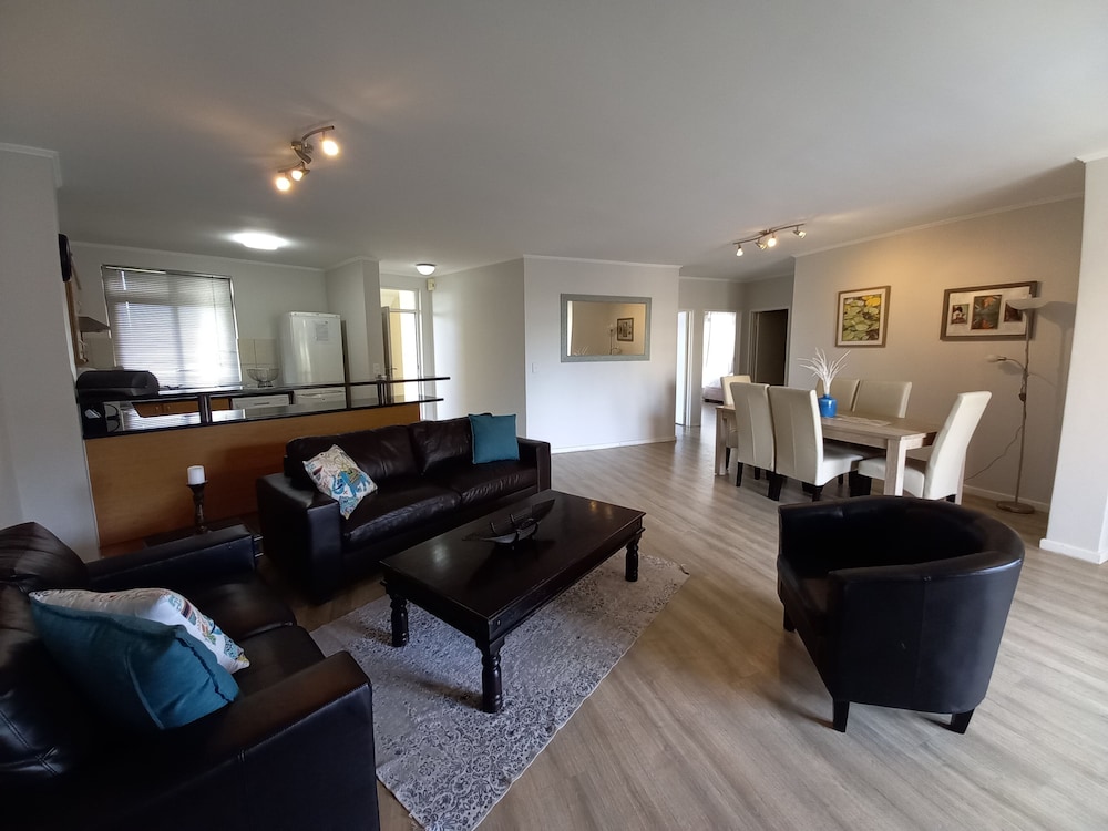 This proved to be a very nice stay for my family. It's a little outside of Cape Town, but we had a rental car. It's relatively easy to find, and worked great for our needs. There's pool access, and a mall nearby that you can get a few groceries or go out to eat. Highly recommend, especially for those families traveling like ours (3 children).