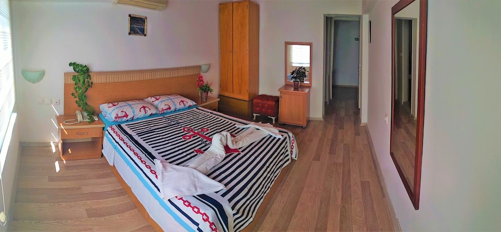 Loved our stay at the Levent Hotel. Breakfast in Turkey is always nice and this place was no exception. Just a few minutes drive from the heart of Fethiye with parking on the street. Nice balcony with a sea view and a large terrace for breakfast.