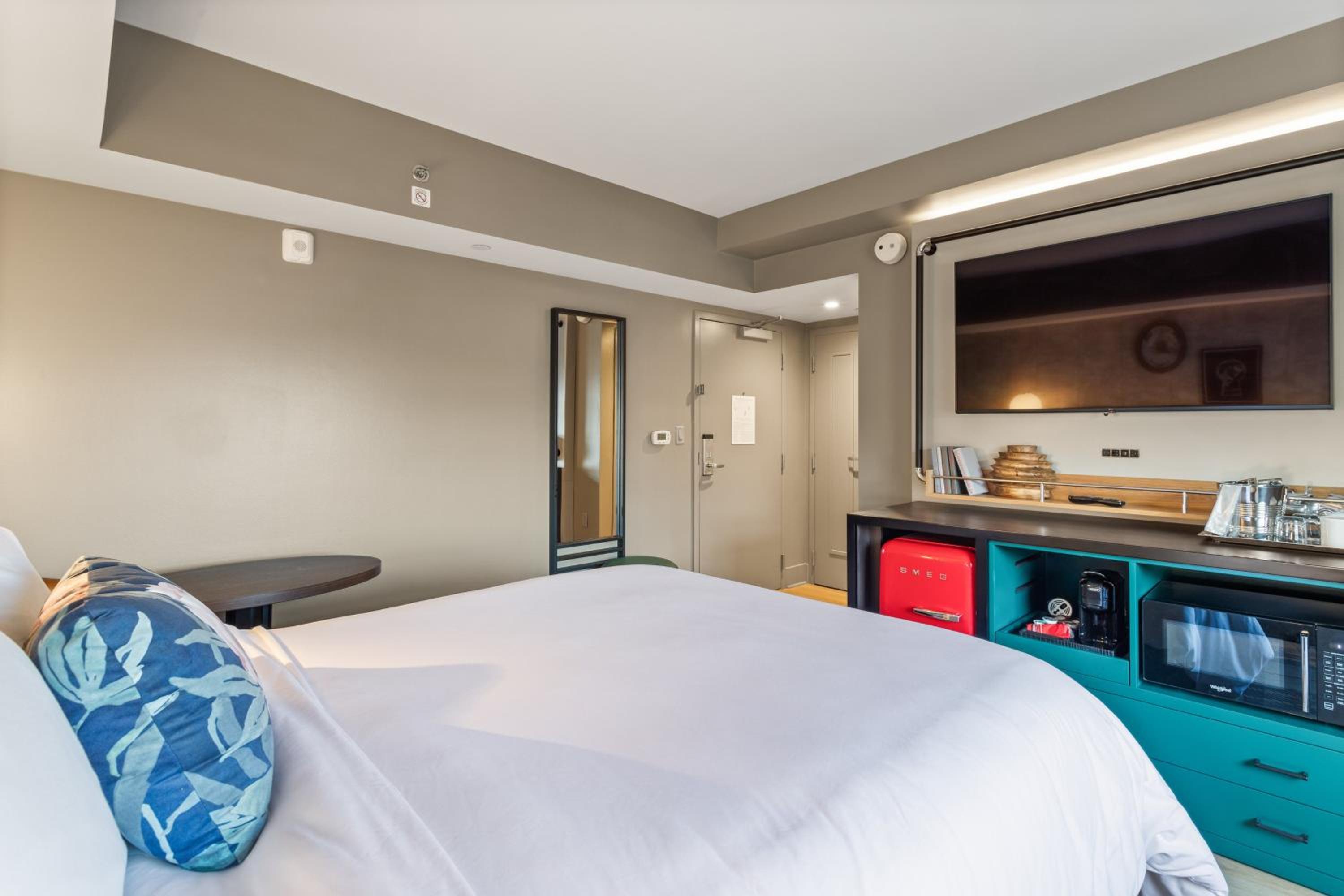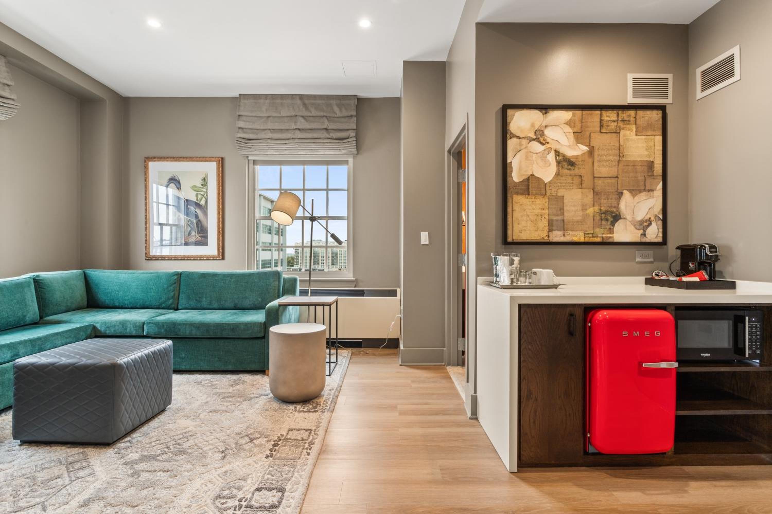 Relax in style in our brightly decorated rooms featuring wood floors, 37-inch flat-screen TVs, and work desks. Stay connected with free Wi-Fi access and enjoy the convenience of coffee making facilities in your room.