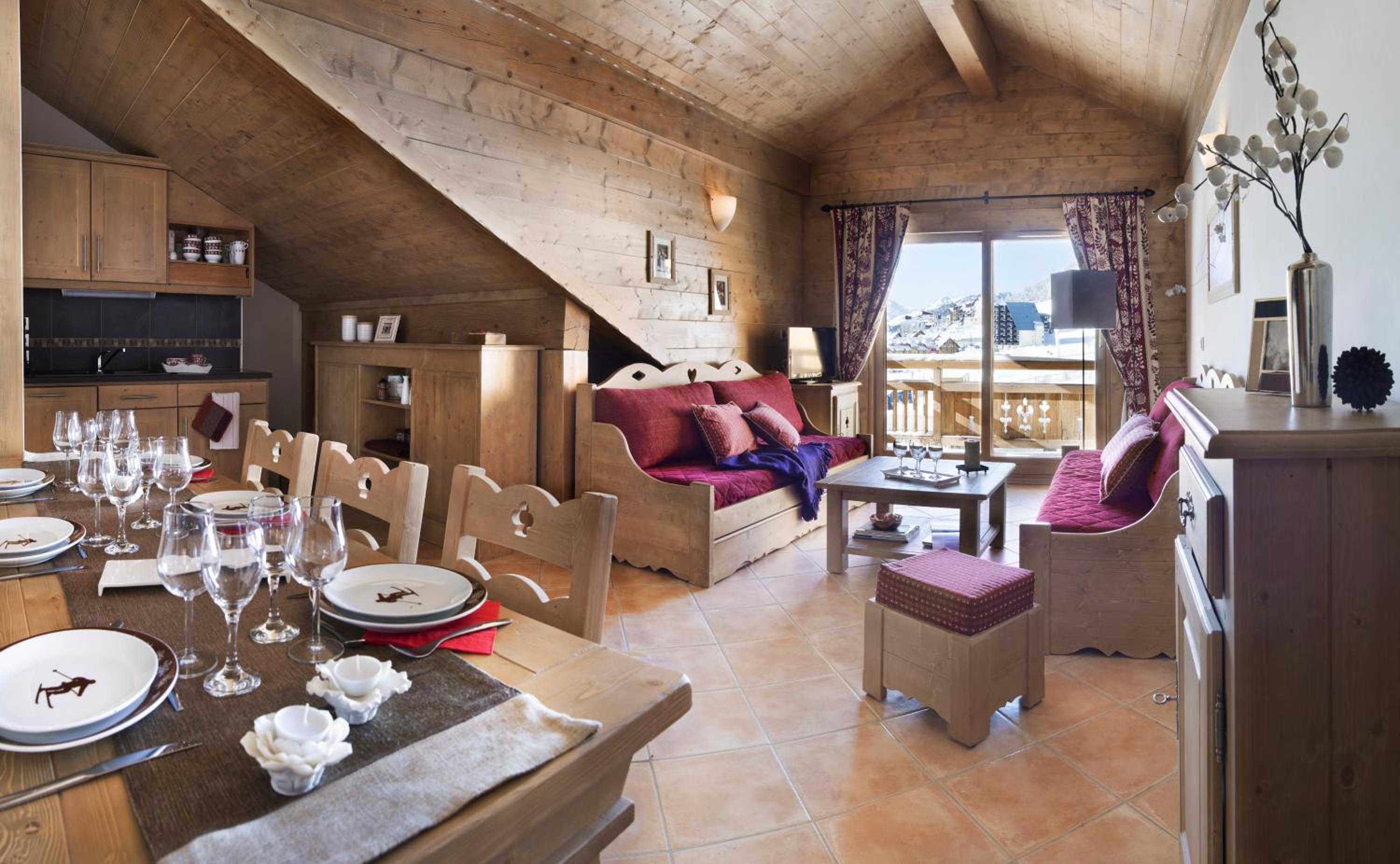 Great location, genuinely ski in ski out. Comfortable, spacious, really well stocked kitchen. Pool was a real treat after the slopes. Staff were friendly and helpful.