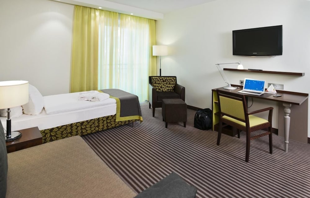 The hotel is new, clean, fresh and very "German feel", excellent facility including 2 bars in the complex and a free bus in the morning to take you to the local customers.