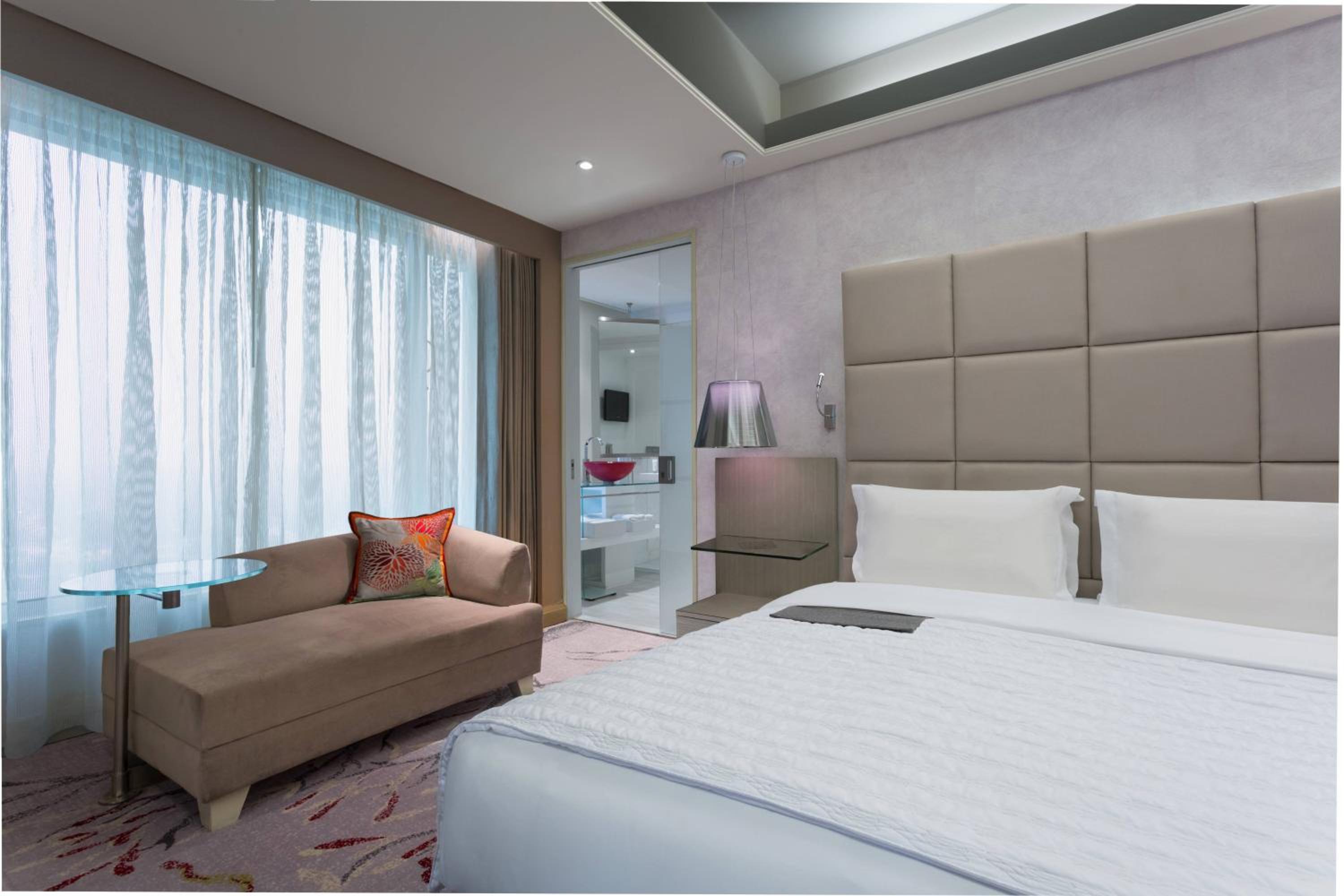 Enjoy contemporary and spacious rooms with flat-screen TVs, minibars, and en suite bathrooms with separate hand-showers and bathtubs, providing ultimate comfort.