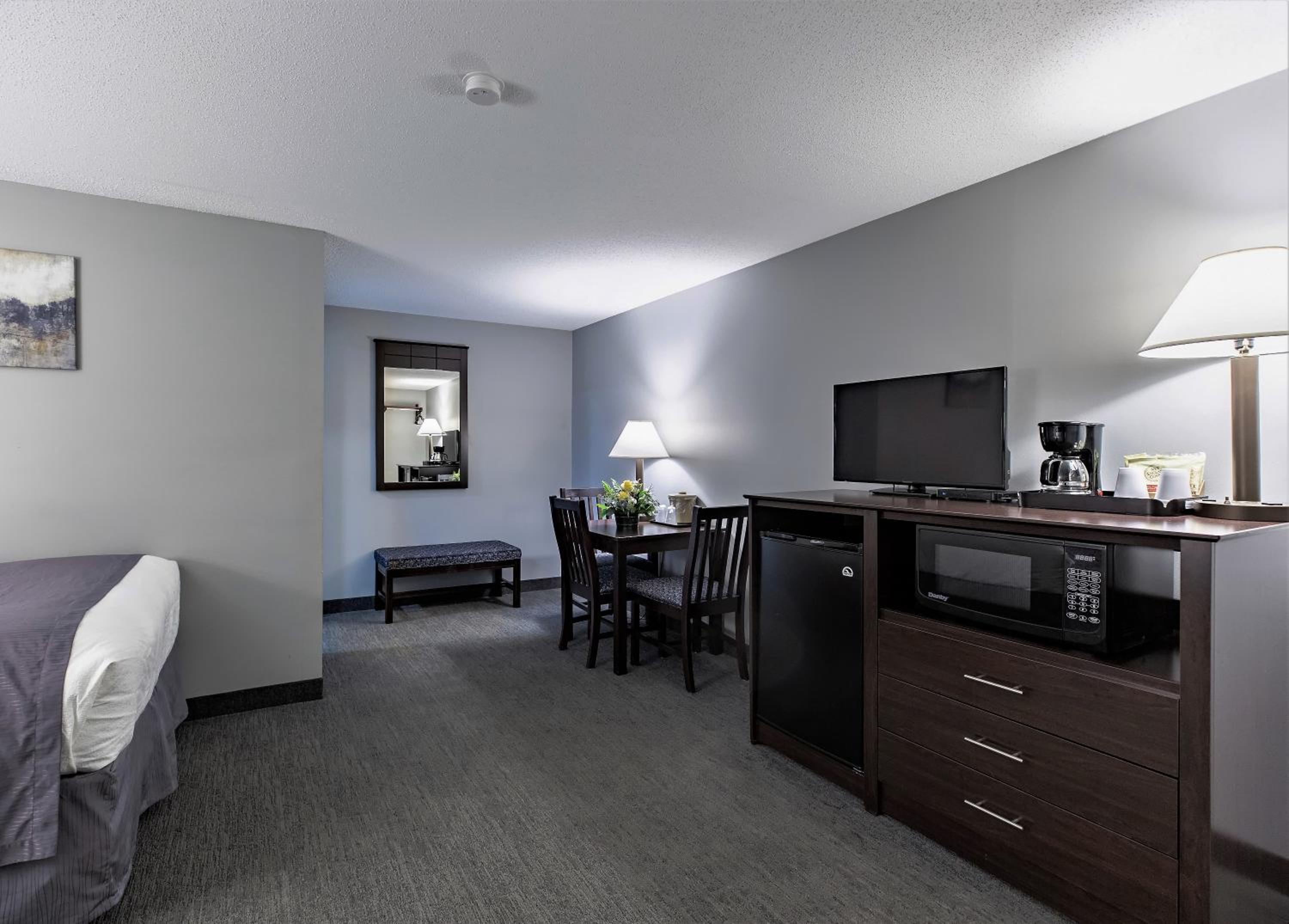 Our guest rooms are designed to provide ultimate comfort with amenities like free WiFi, microwave, refrigerator, and coffee maker. Stay entertained with cable TV and enjoy the convenience of a sofa bed in our suites.