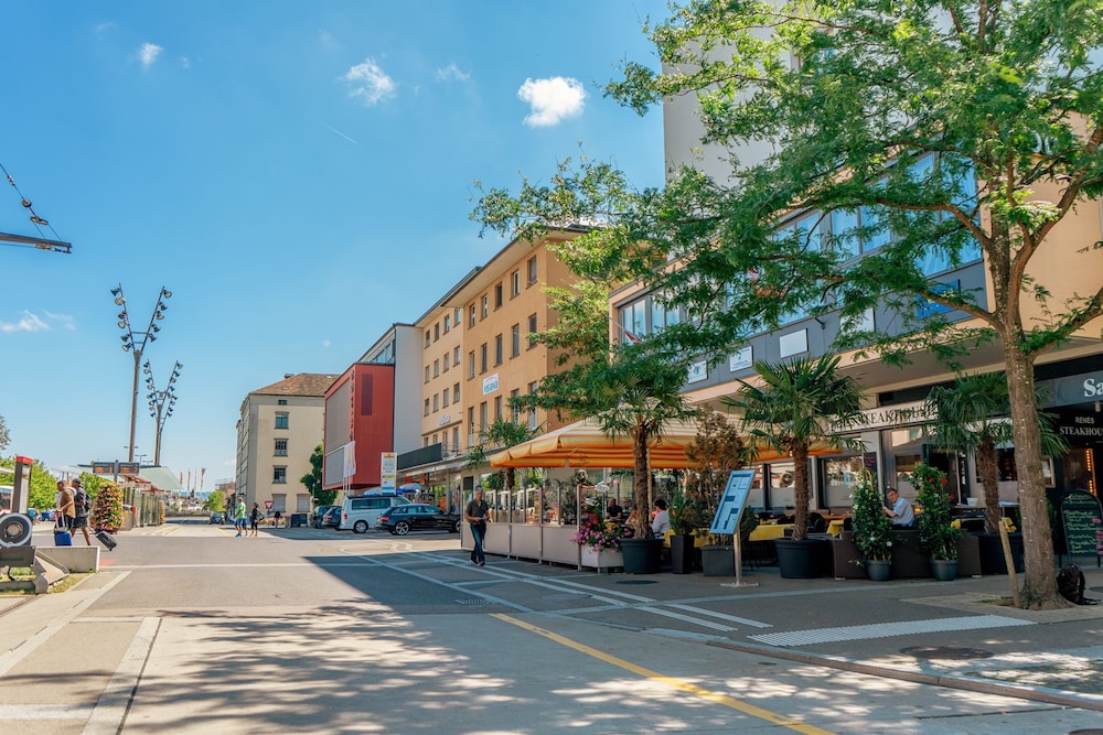 Hotel liegt direkt beim Bahnhof. Vorteil: man ist rasch in der Unterkunft. Nachteil: Isolation ist schlecht. Man hört jedes Tram, die Kirchenglocke und auxh die Autos/Menschen.
